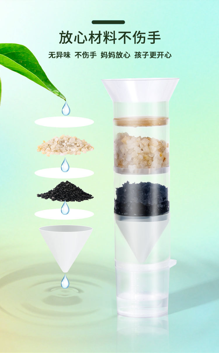 초등학생을 위한 과학 실험 교구 자체 제작 정수기 필터 물 기술 소규모 생산 증기 과학 및 교육 프런티어