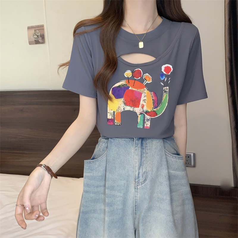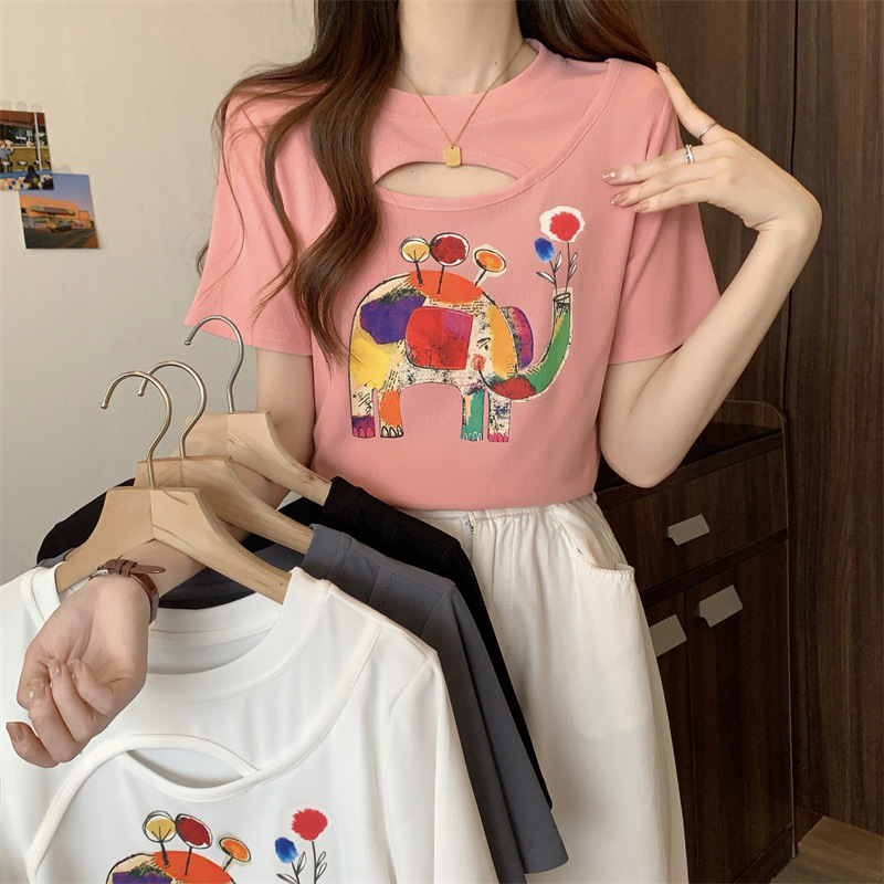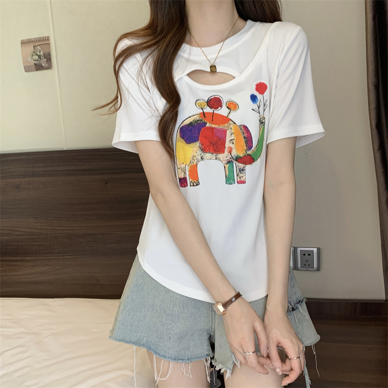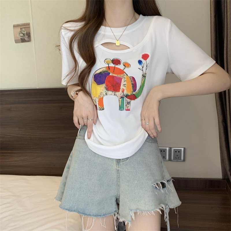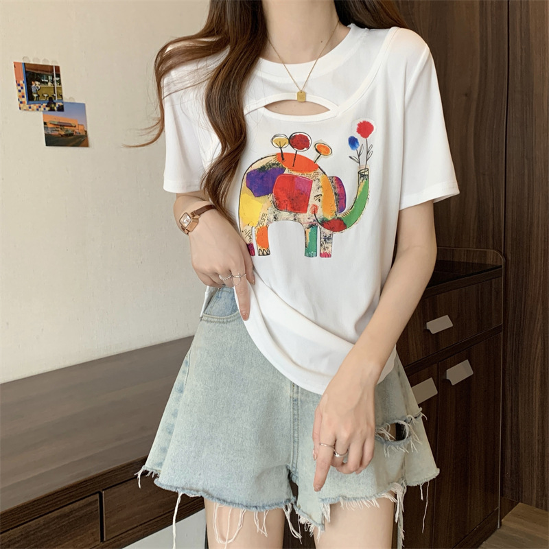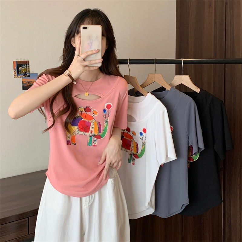 플러스 사이즈 여자의 여름 새로운 반팔 티셔츠 여자의 어깨 프랑스 스타일 통통녀 배꼽 커버 슬리밍 시크 틈새 탑스토어 가기