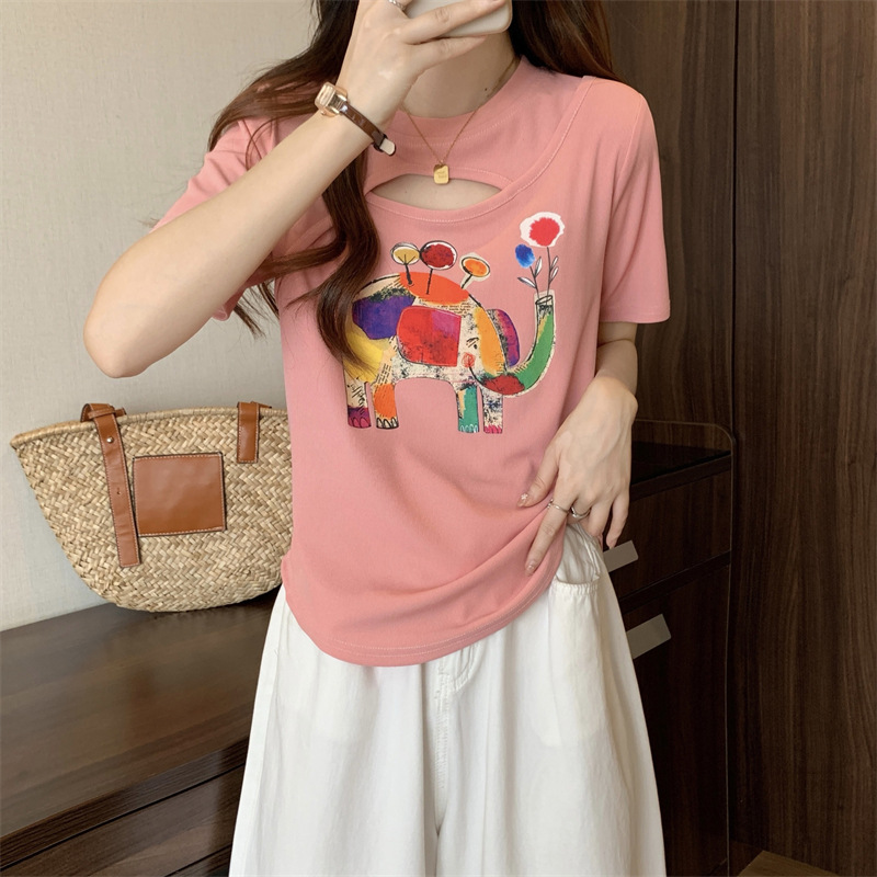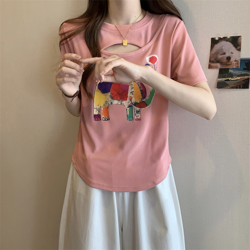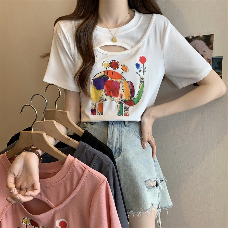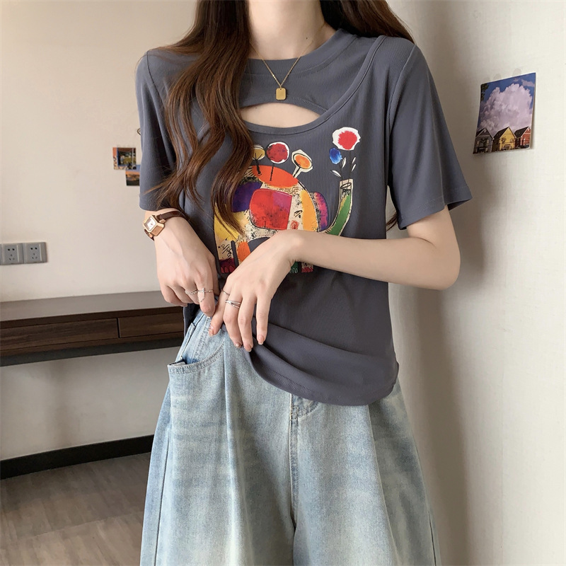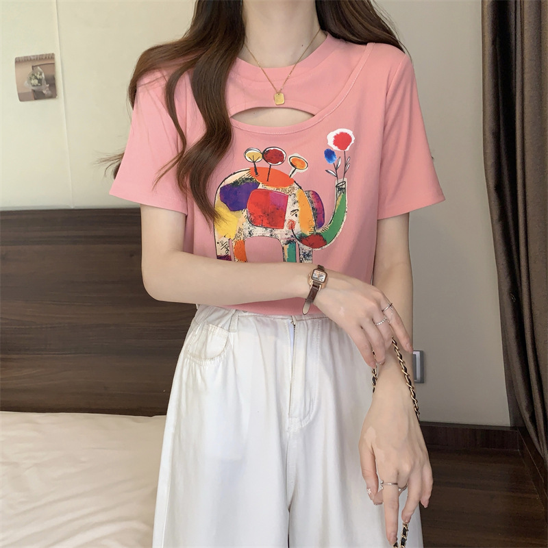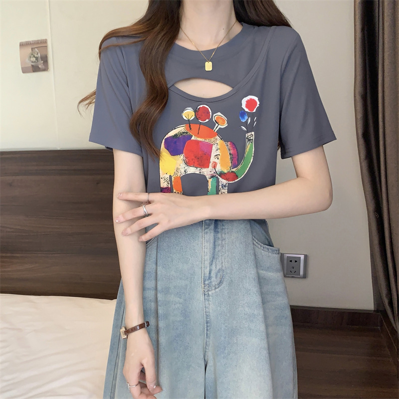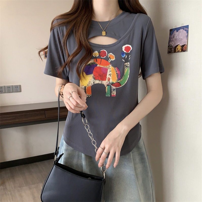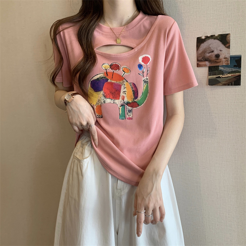 플러스 사이즈 여자의 여름 새로운 반팔 티셔츠 여자의 어깨 프랑스 스타일 통통녀 배꼽 커버 슬리밍 시크 틈새 탑