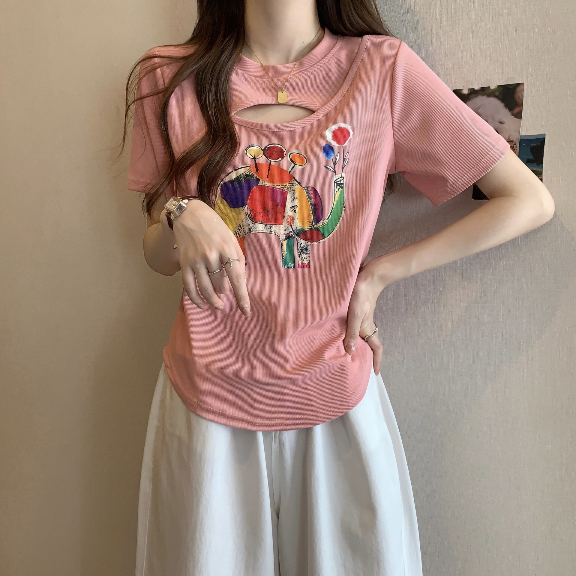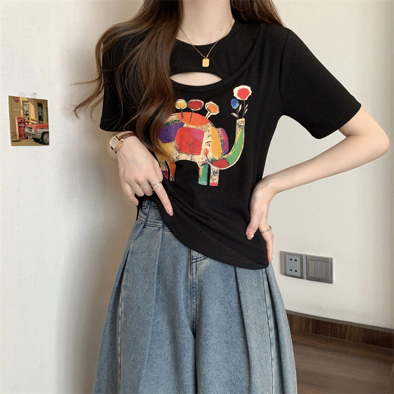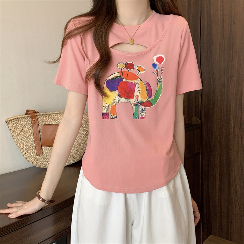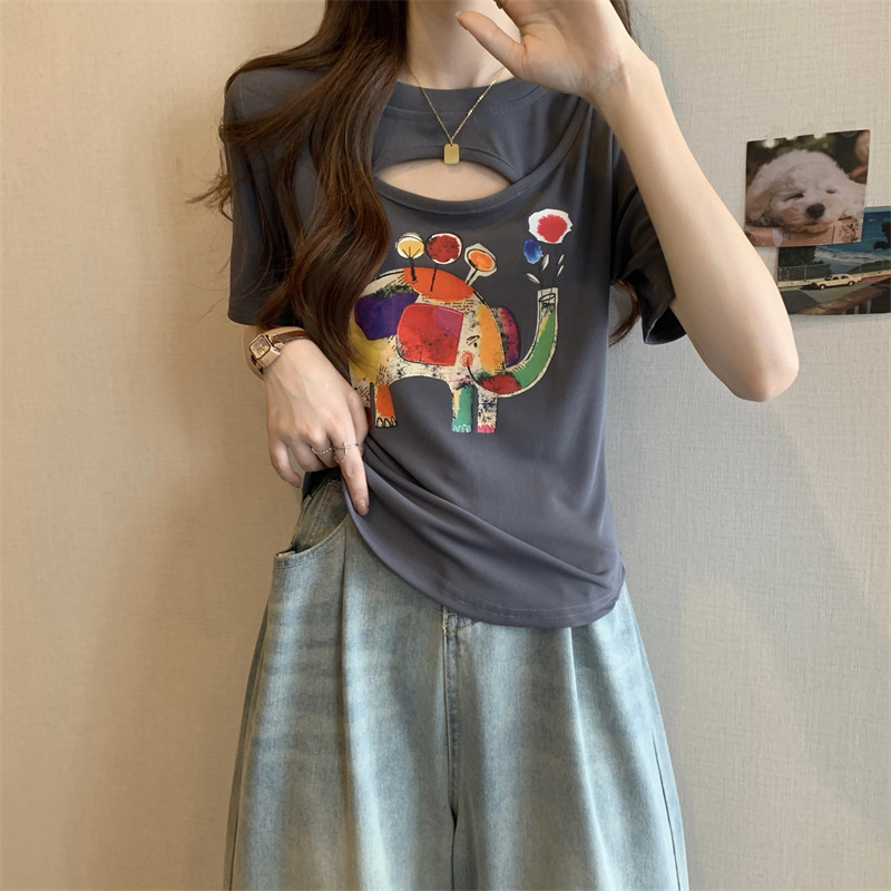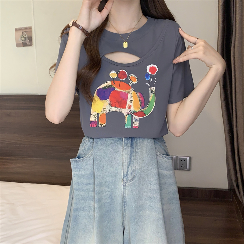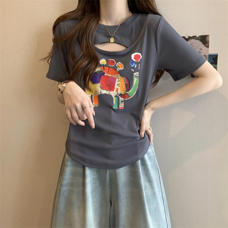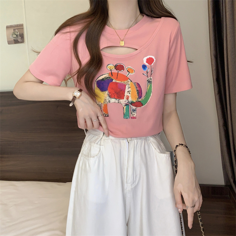 플러스 사이즈 여자의 여름 새로운 반팔 티셔츠 여자의 어깨 프랑스 스타일 통통녀 배꼽 커버 슬리밍 시크 틈새 탑