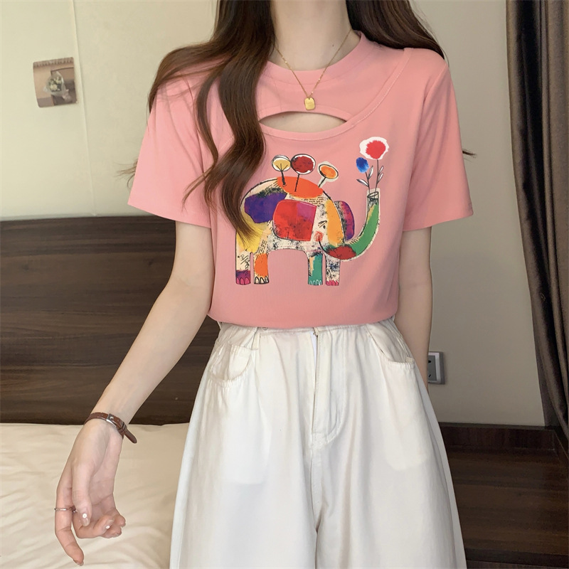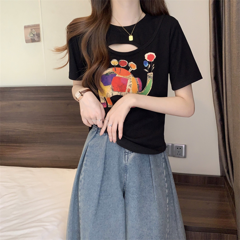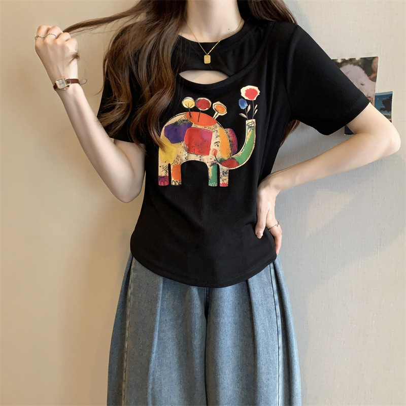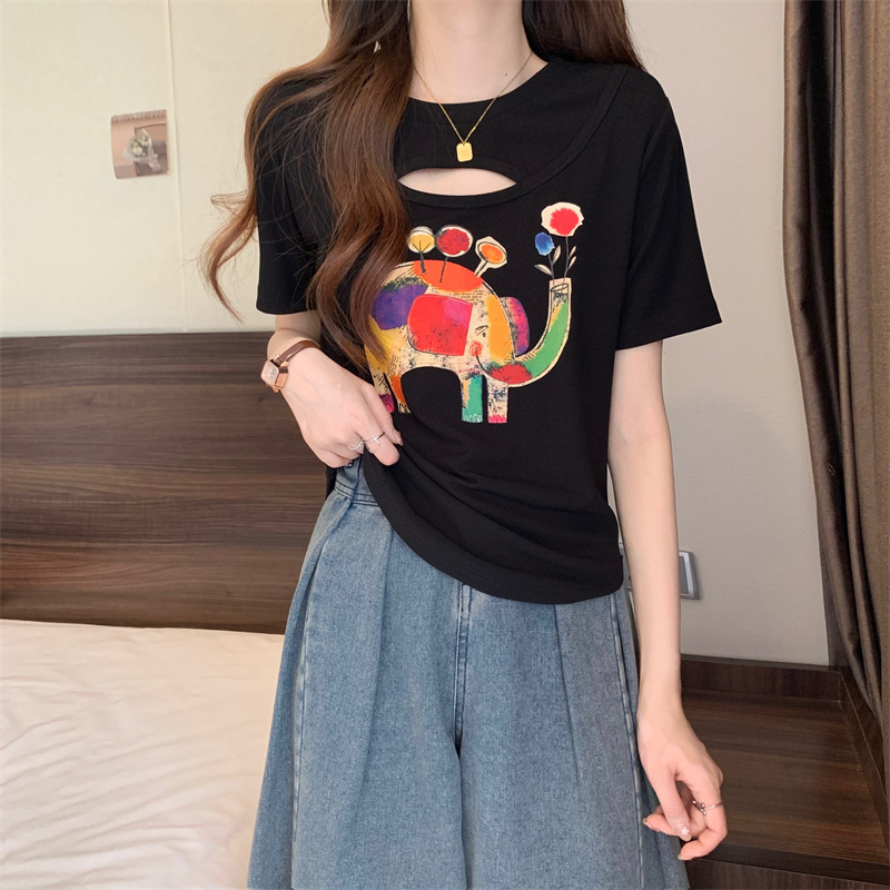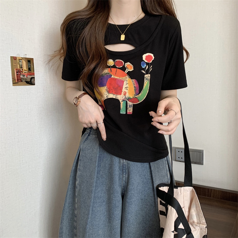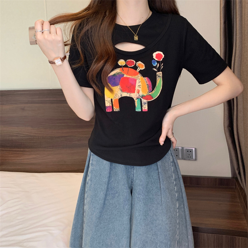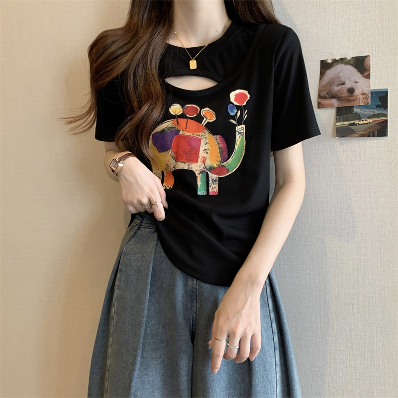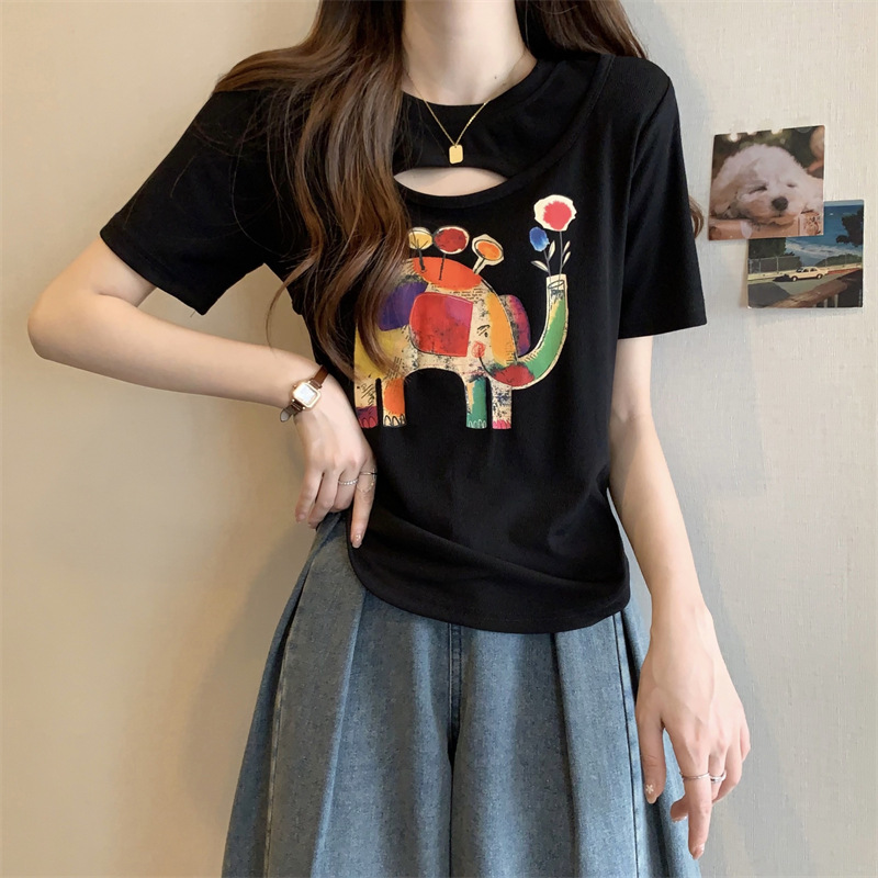 플러스 사이즈 여자의 여름 새로운 반팔 티셔츠 여자의 어깨 프랑스 스타일 통통녀 배꼽 커버 슬리밍 시크 틈새 탑