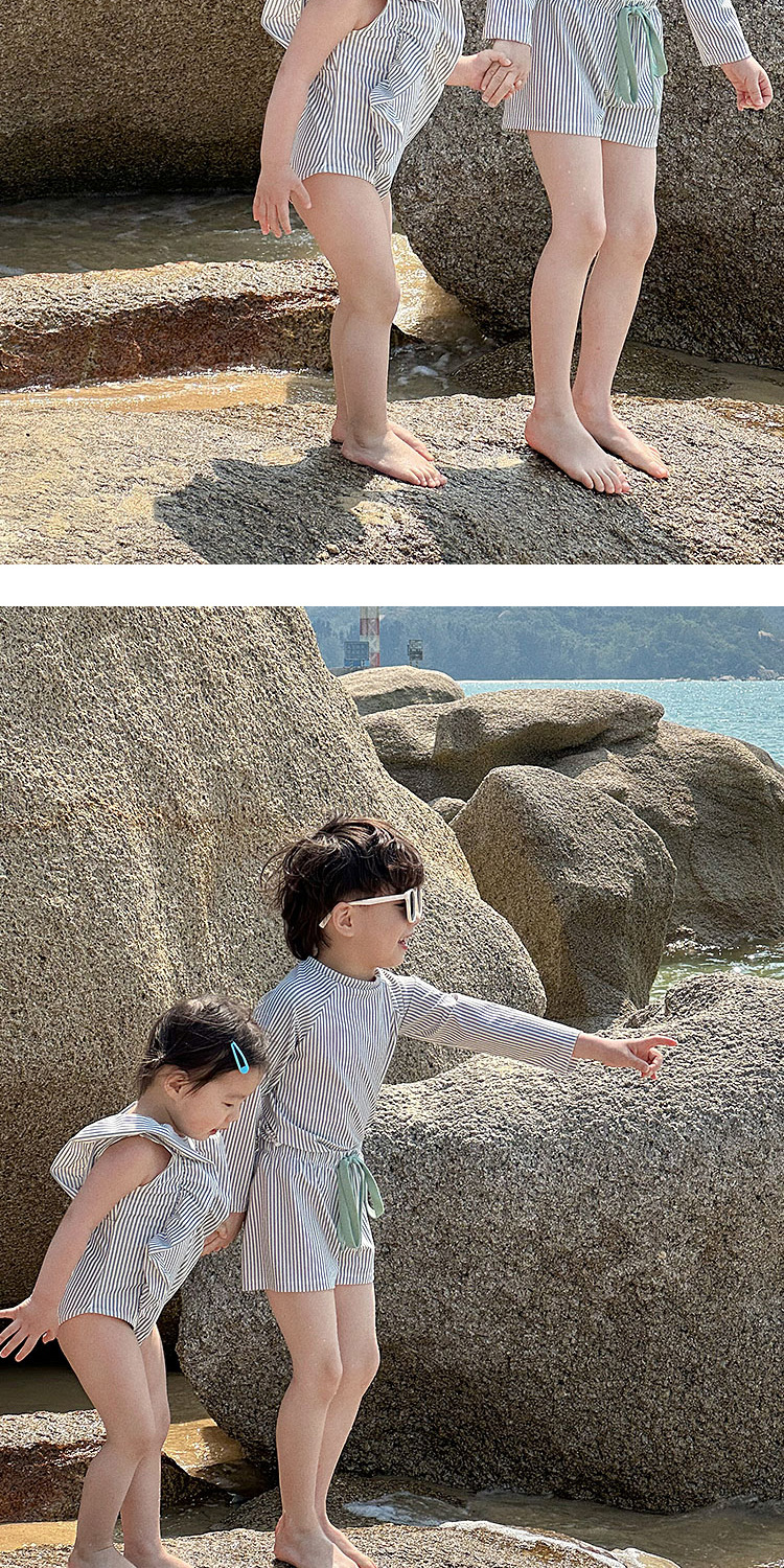 남아 및 여아용 한국 어린이 수영복, 자외선 차단, 속건성 줄무늬 수영복, 긴팔 정장, 캐주얼하고 세련된 수영복스토어 가기