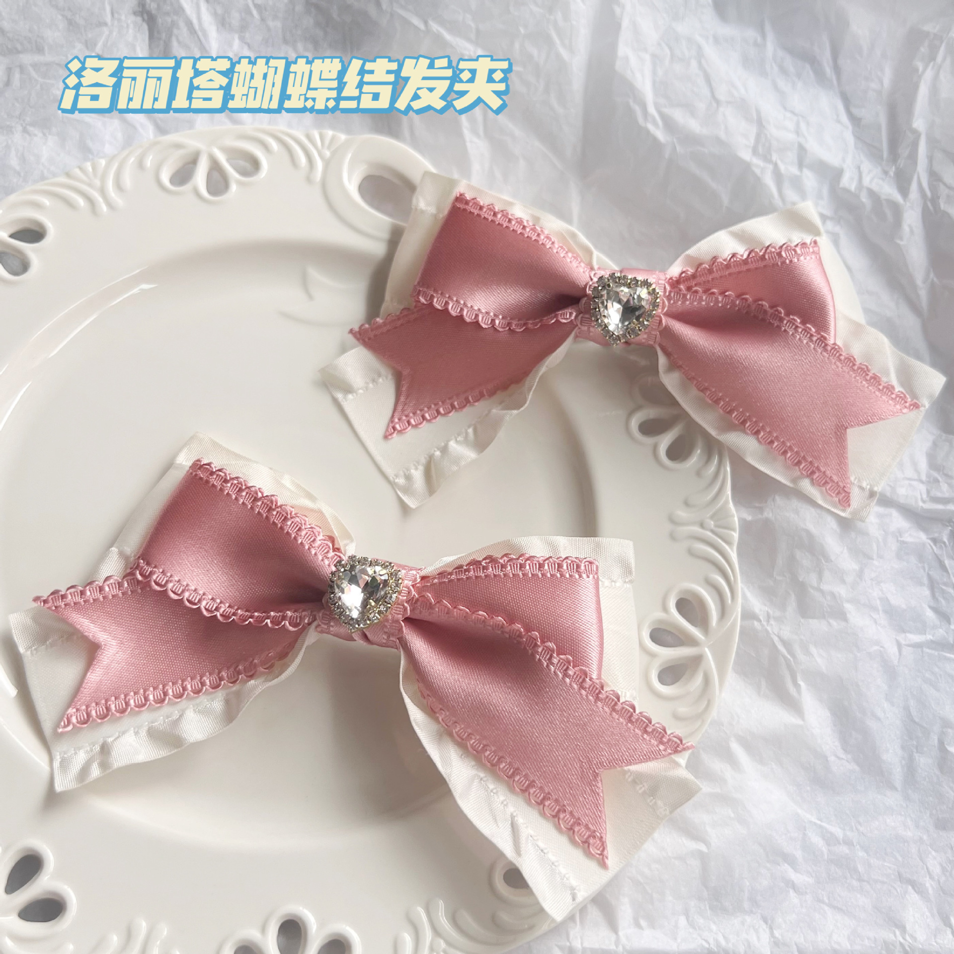 중공업 라이트 럭셔리 로리타 수제 궁전 스타일 헤어 액세서리 인형 공주 스타일 활 사랑 지르콘 머리핀