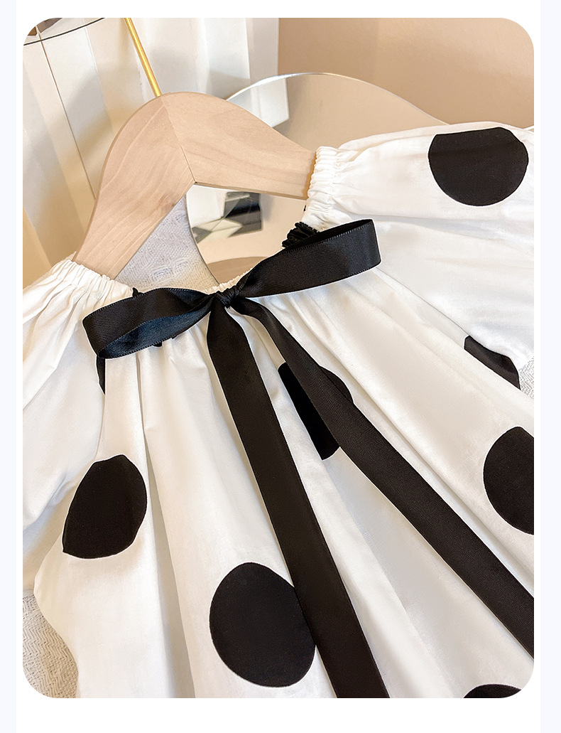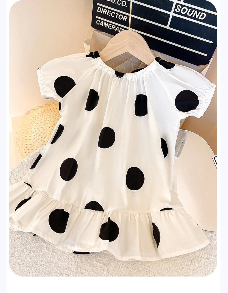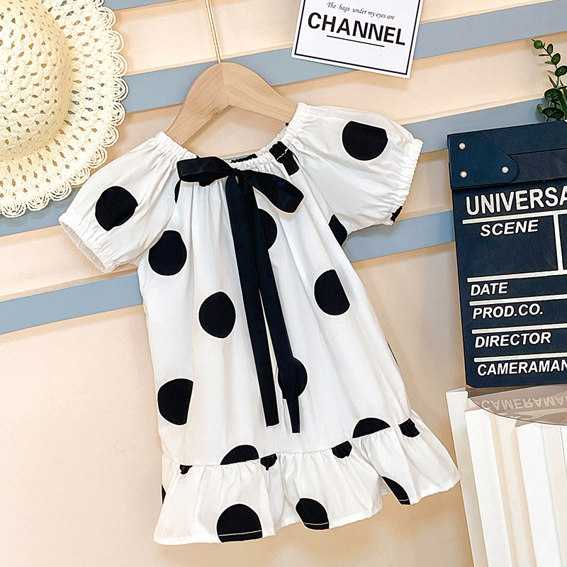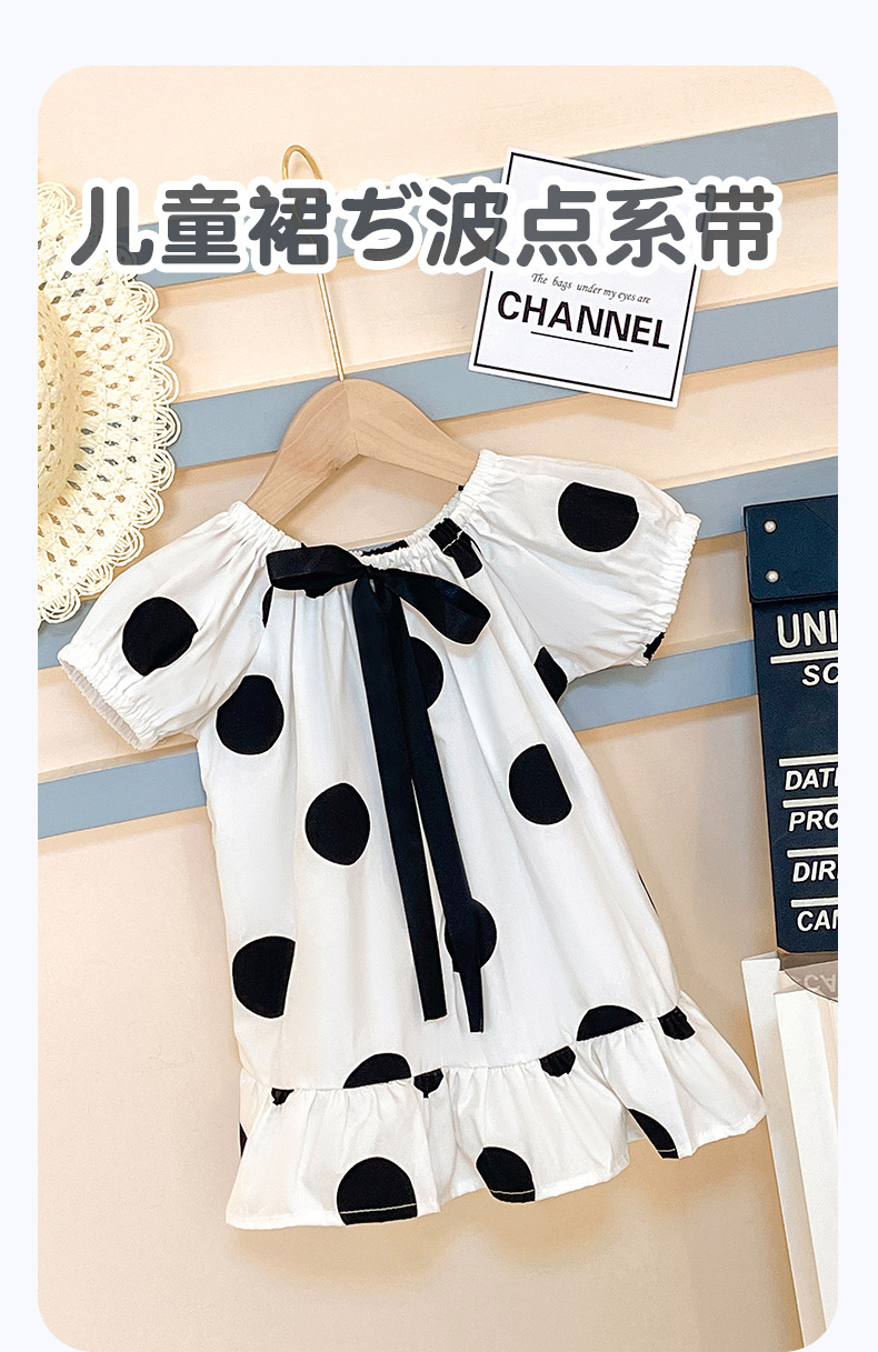 여자 2023 여름 새로운 여아 원피스 여아 아기 소녀 서양 스타일 웨이브 도트 짧은 소매 활 아동복 유행 치마스토어 가기