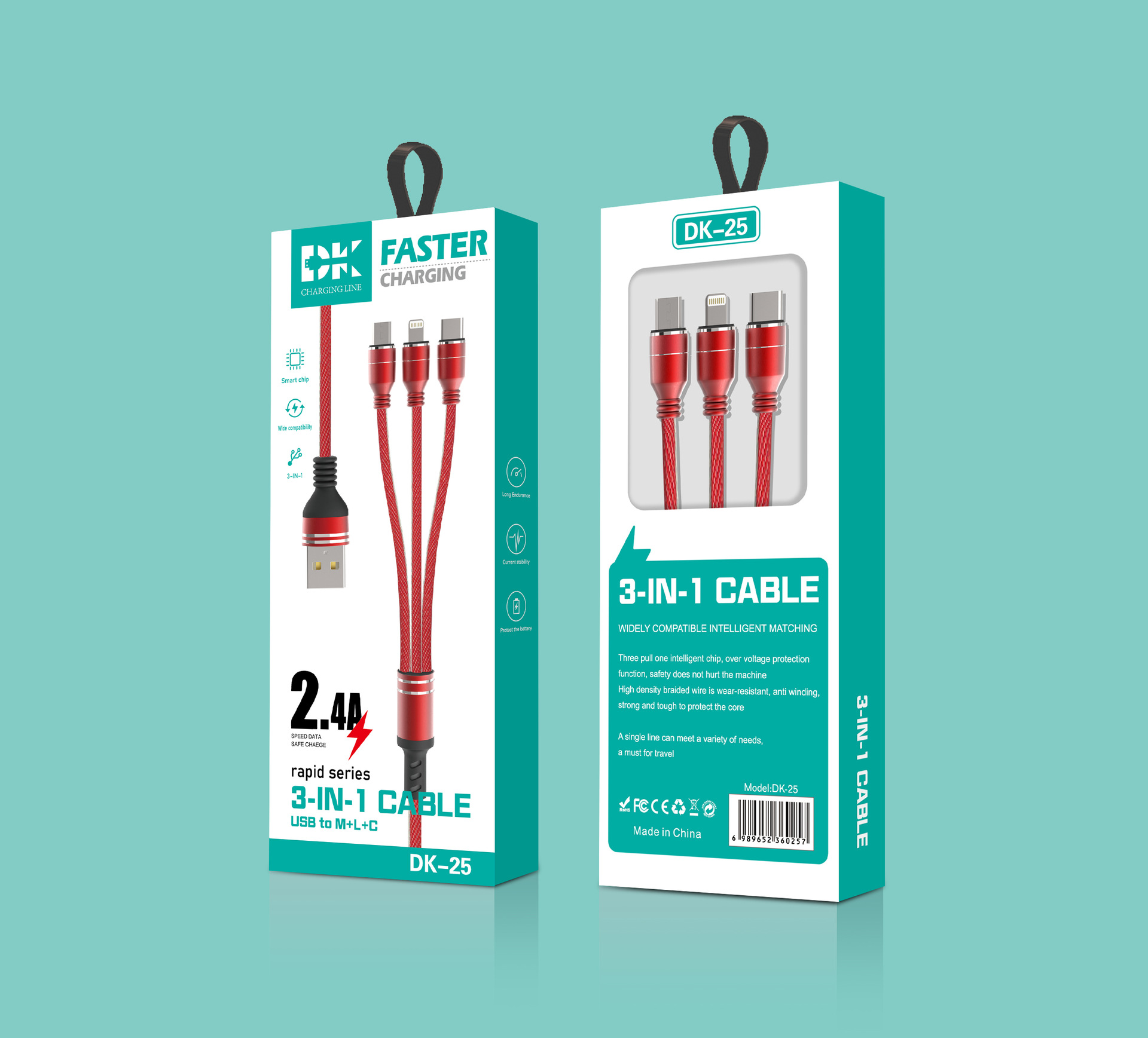 빠른 충전 1 대 3 데이터 라인 3 대 1 휴대 전화 데이터 라인 충전 라인스토어 가기