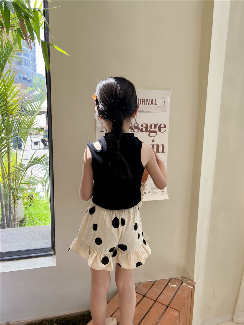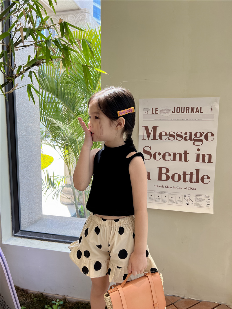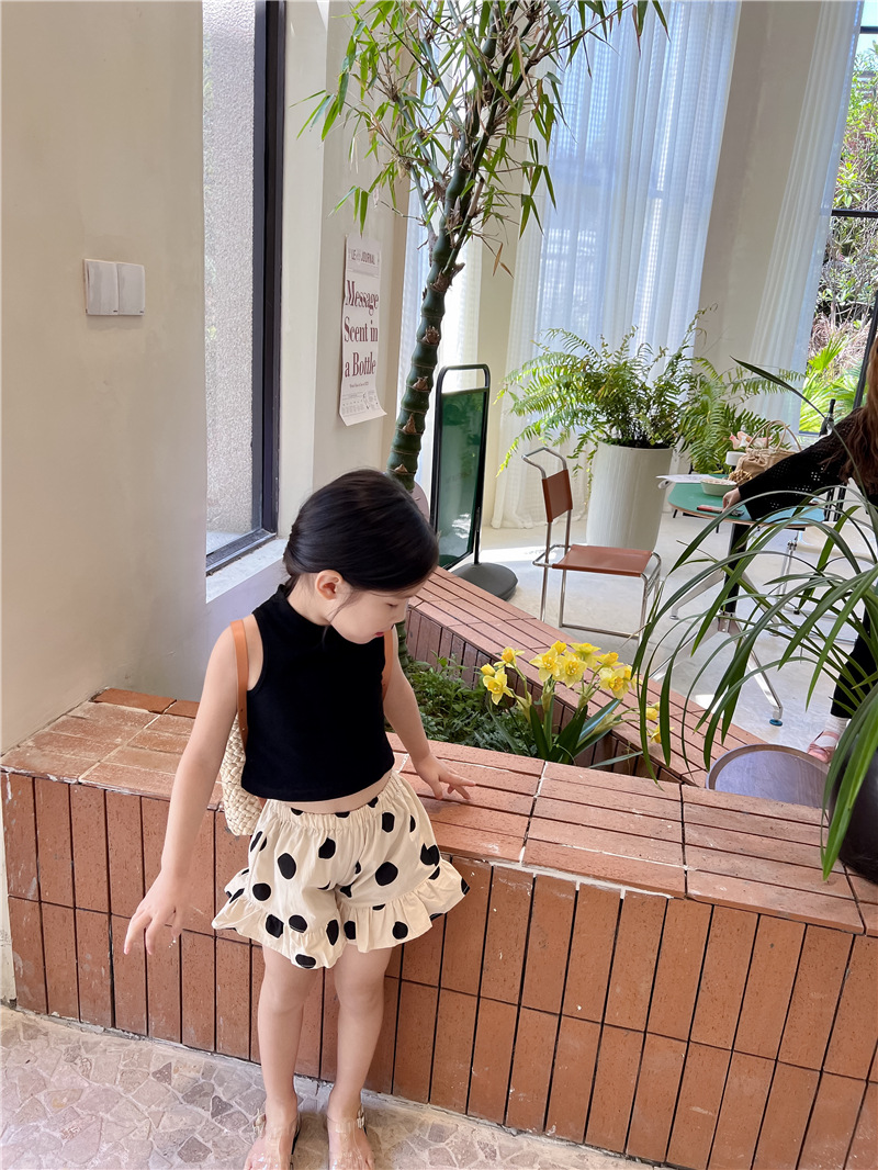 2023 여름 새로운 여자 한국 스타일 블랙 물방울 무늬 반바지 세련된 큰 아이 느슨한 캐주얼 핫 팬츠 k95