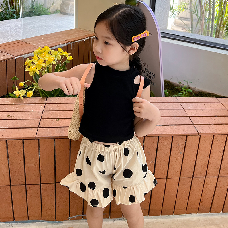 2023 여름 새로운 여자 한국 스타일 블랙 물방울 무늬 반바지 세련된 큰 아이 느슨한 캐주얼 핫 팬츠 k95스토어 가기
