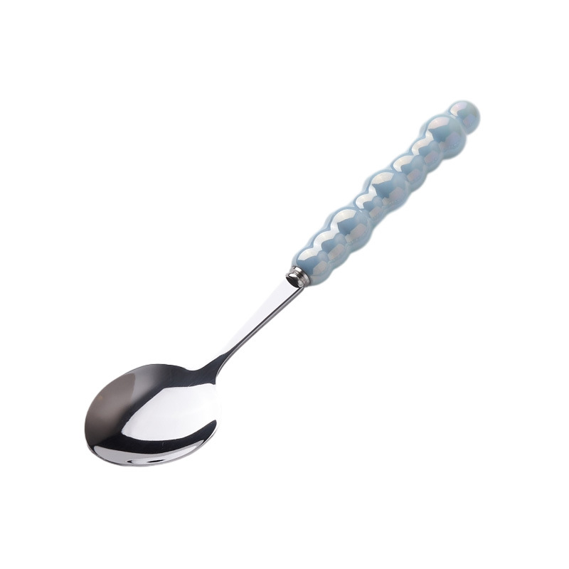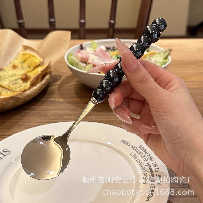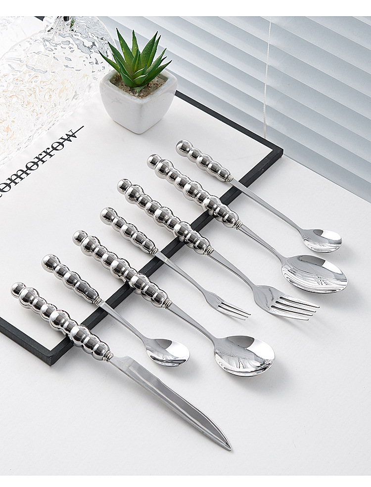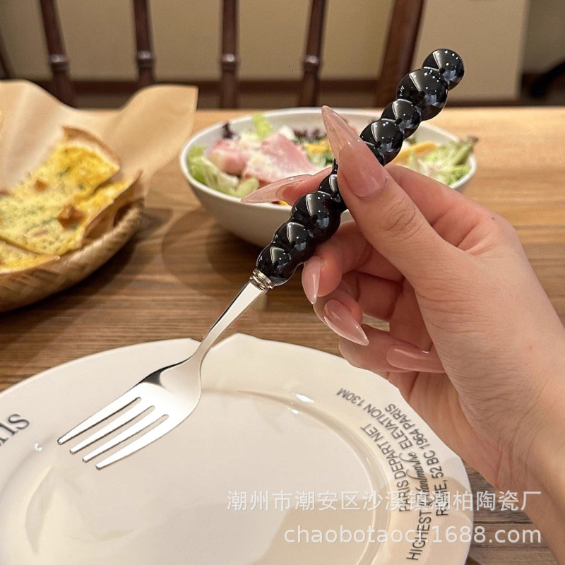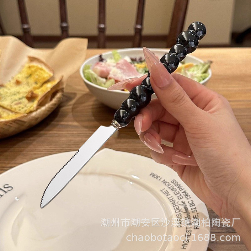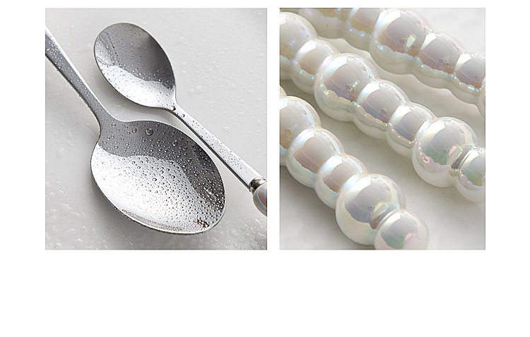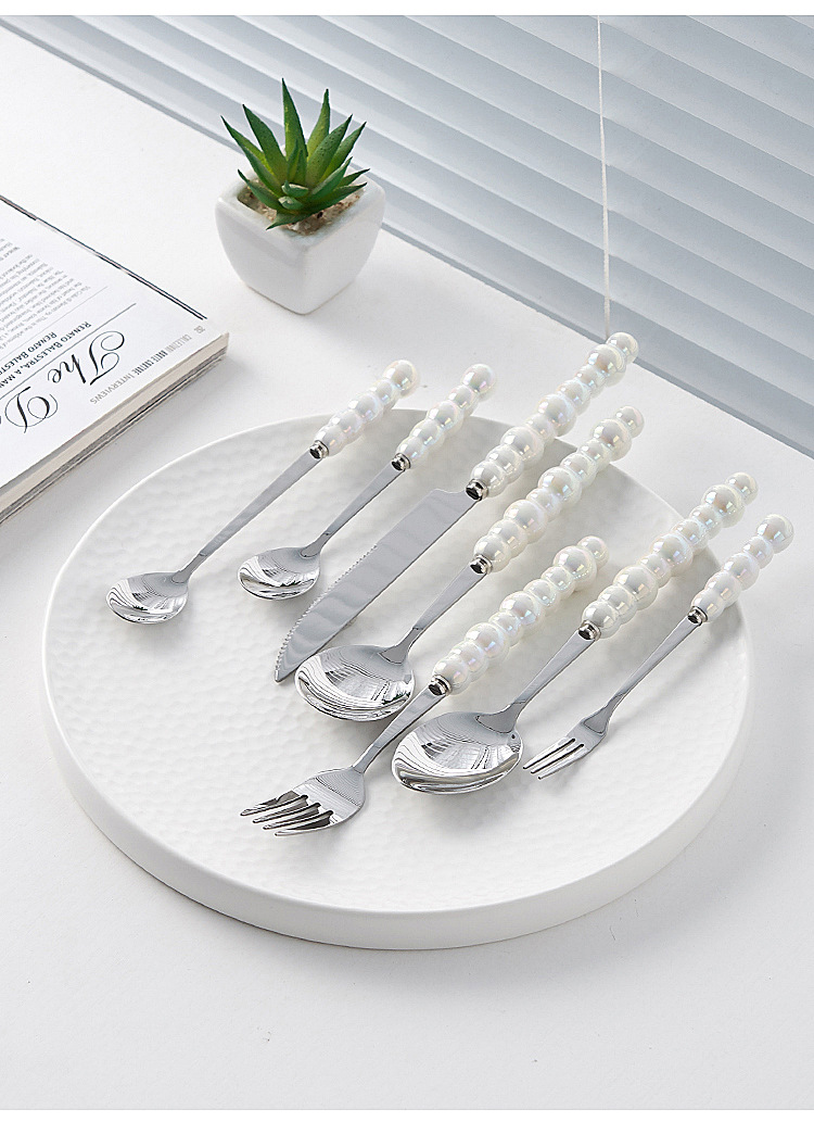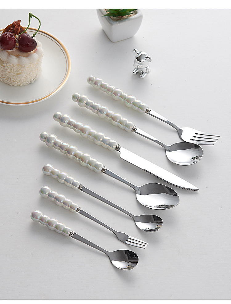 가벼운 고급 세라믹 진주 손잡이 칼과 포크 스푼 창조적 인 스테인레스 스틸 식기 세트 고 가치 북유럽 서양식 식기스토어 가기