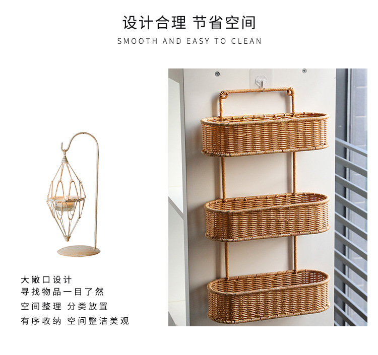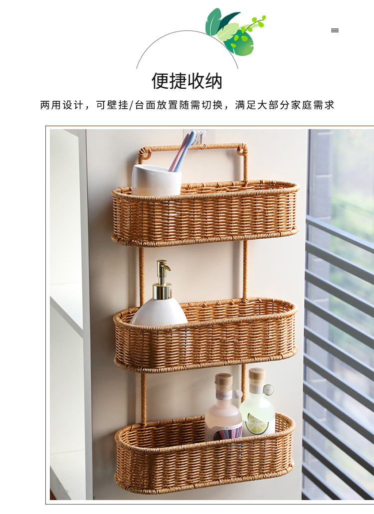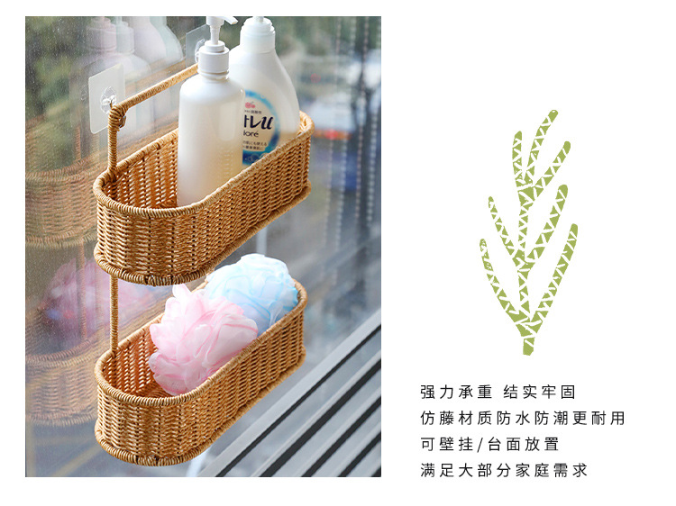 욕실 샤워 젤 주최자 랙 주방 스토리지 랙 다층 펀칭없이 모조 등나무 욕실 스토리지 랙