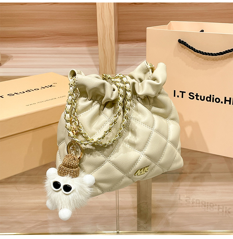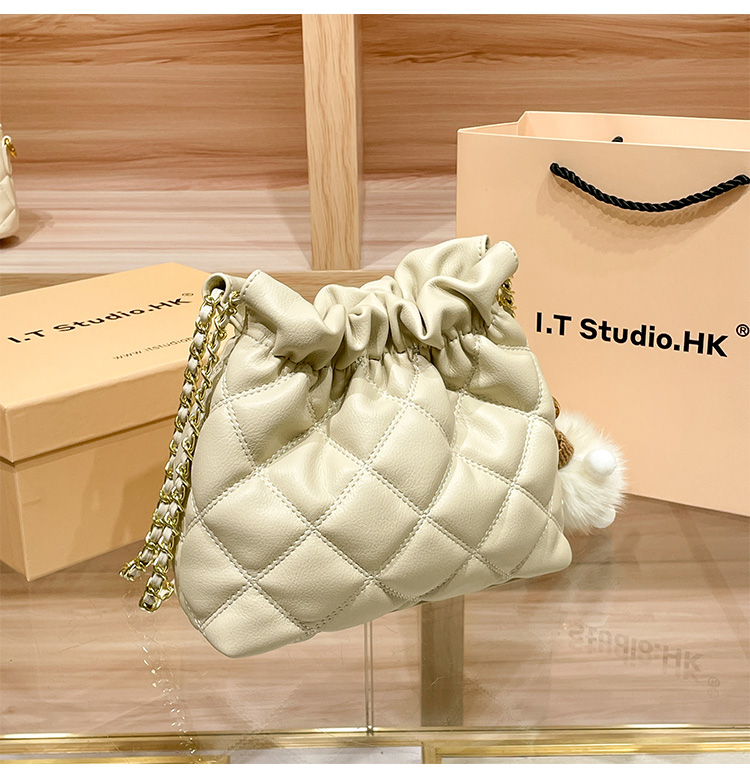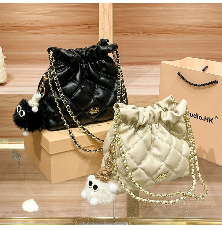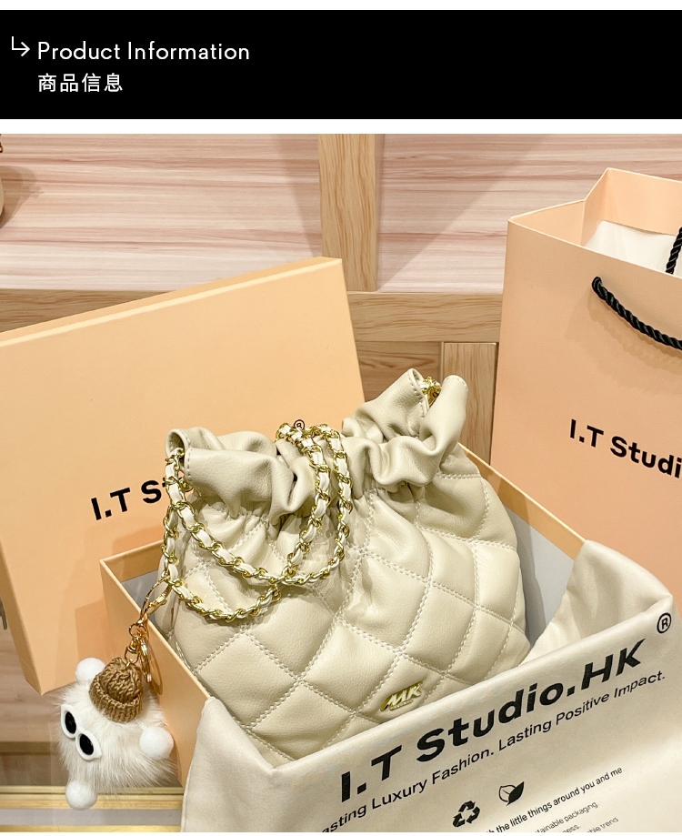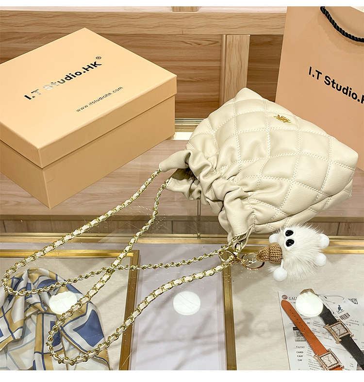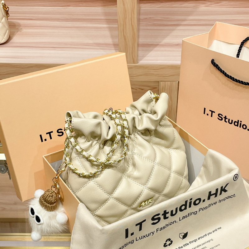 홍콩 정품 가죽 마름모꼴 체인 백 2023 새로운 스타일 샤넬 스타일 하이 엔드 숄더 크로스 바디 버킷 백 여성 여름스토어 가기