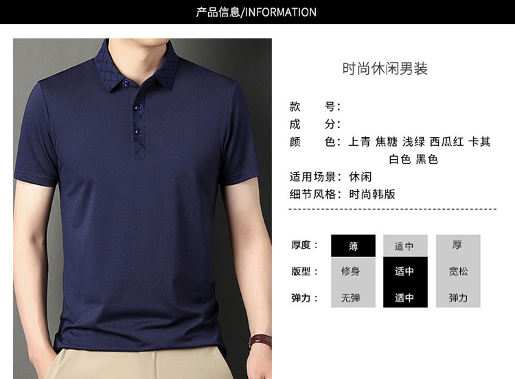 남자의 여름 2023 새로운 녹색 중년 단색 패션 캐주얼 반팔 티셔츠 얇은 남자의 머리카락 세대스토어 가기