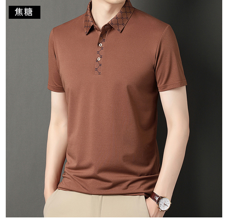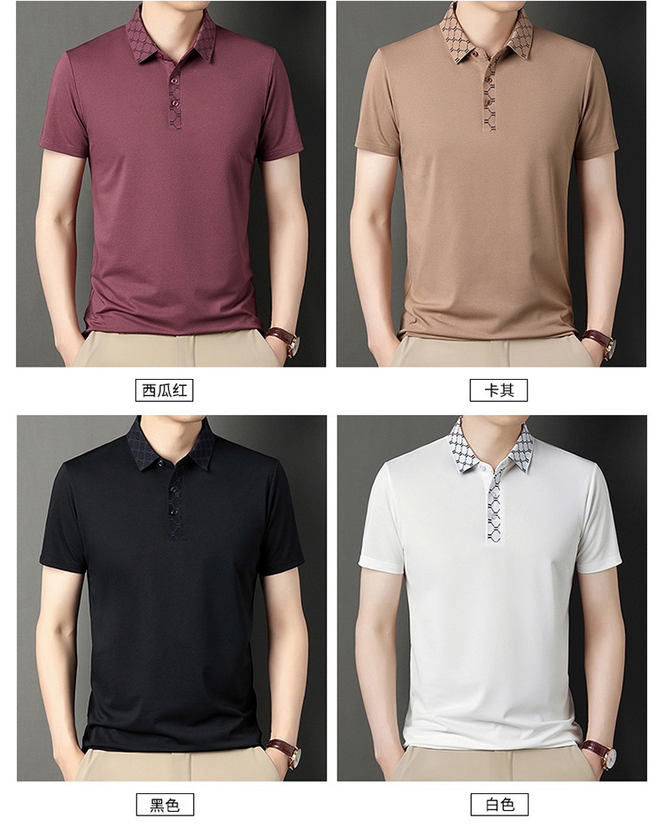 男士夏季2023新款青中年纯色时尚休闲短袖T恤衫薄款男装一件代发
