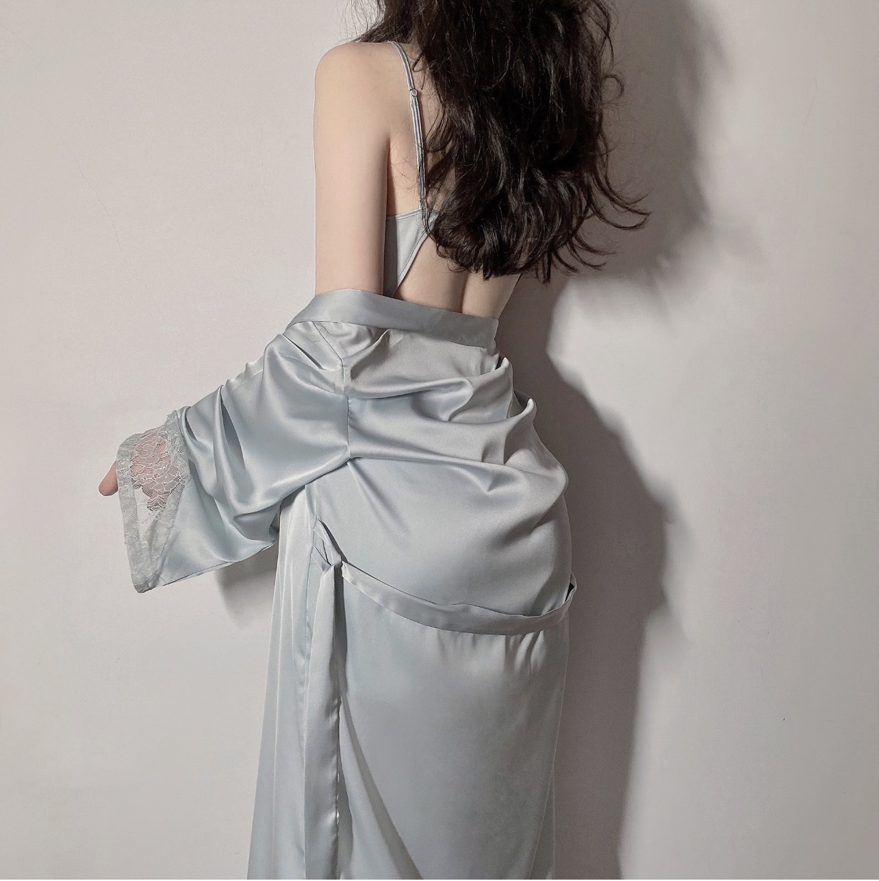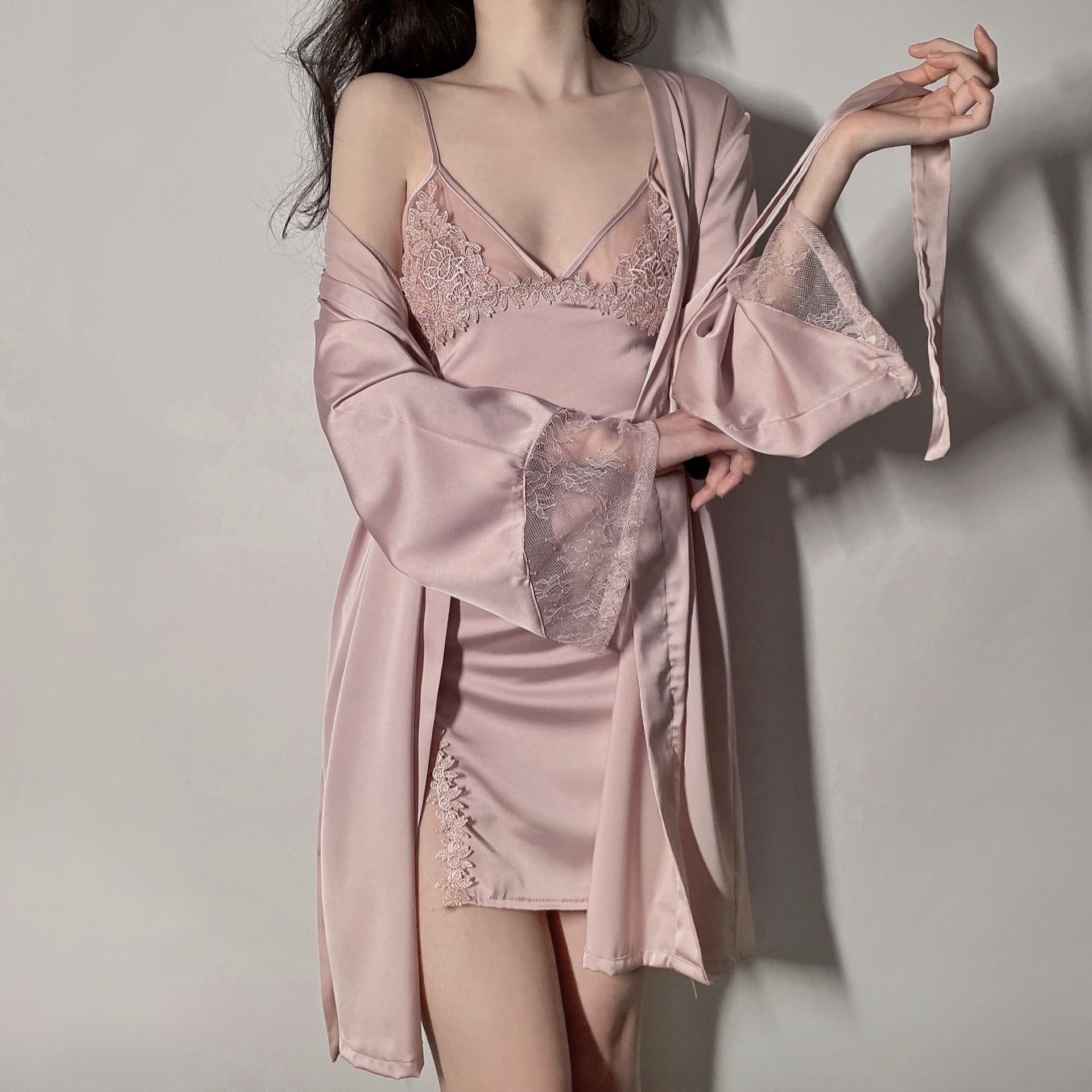 여성을위한 프랑스 섹시한 순수한 욕망 스타일 봄과 여름 중공 잠옷 가슴 패드가있는 고급 서스펜더 잠옷 홈웨어 잠옷스토어 가기