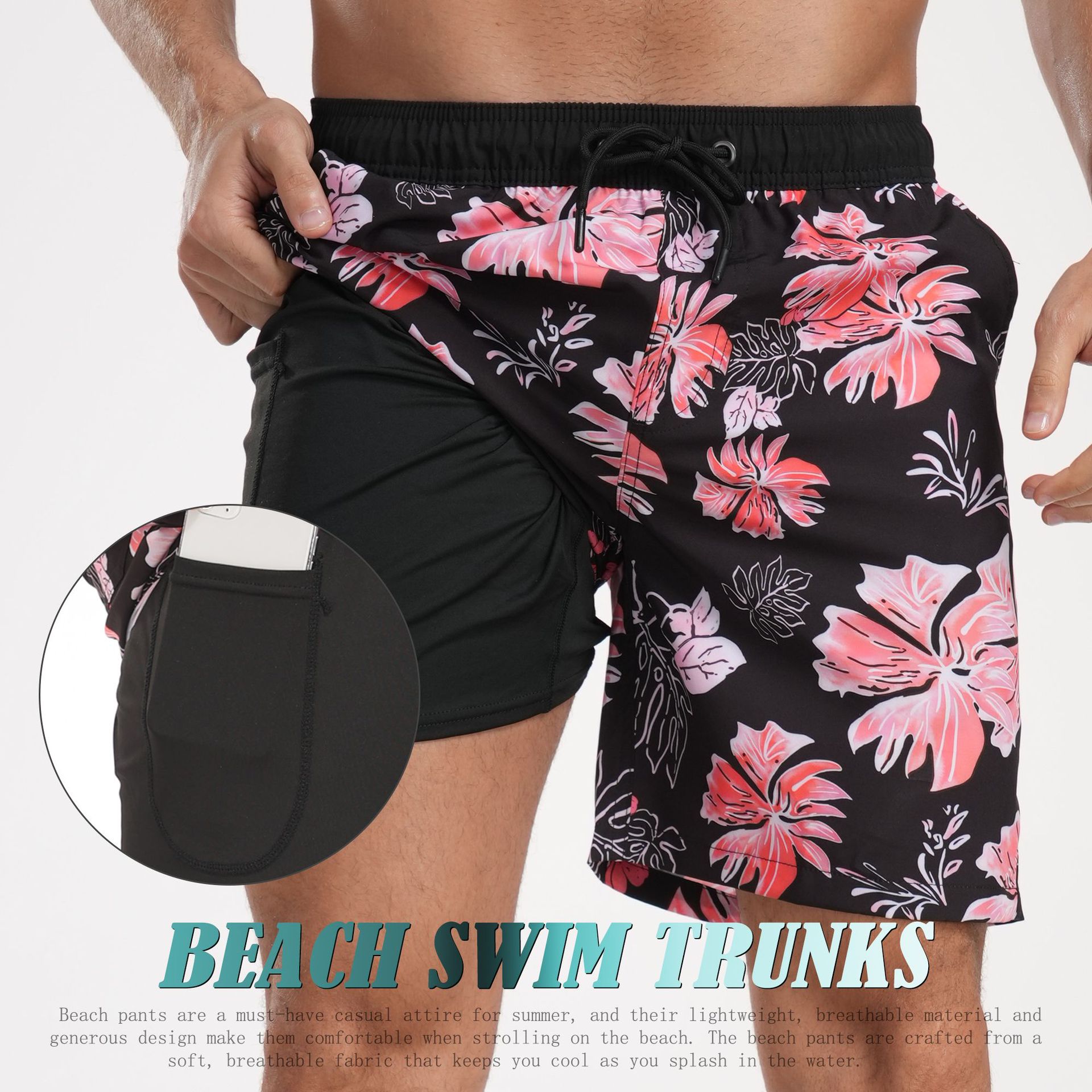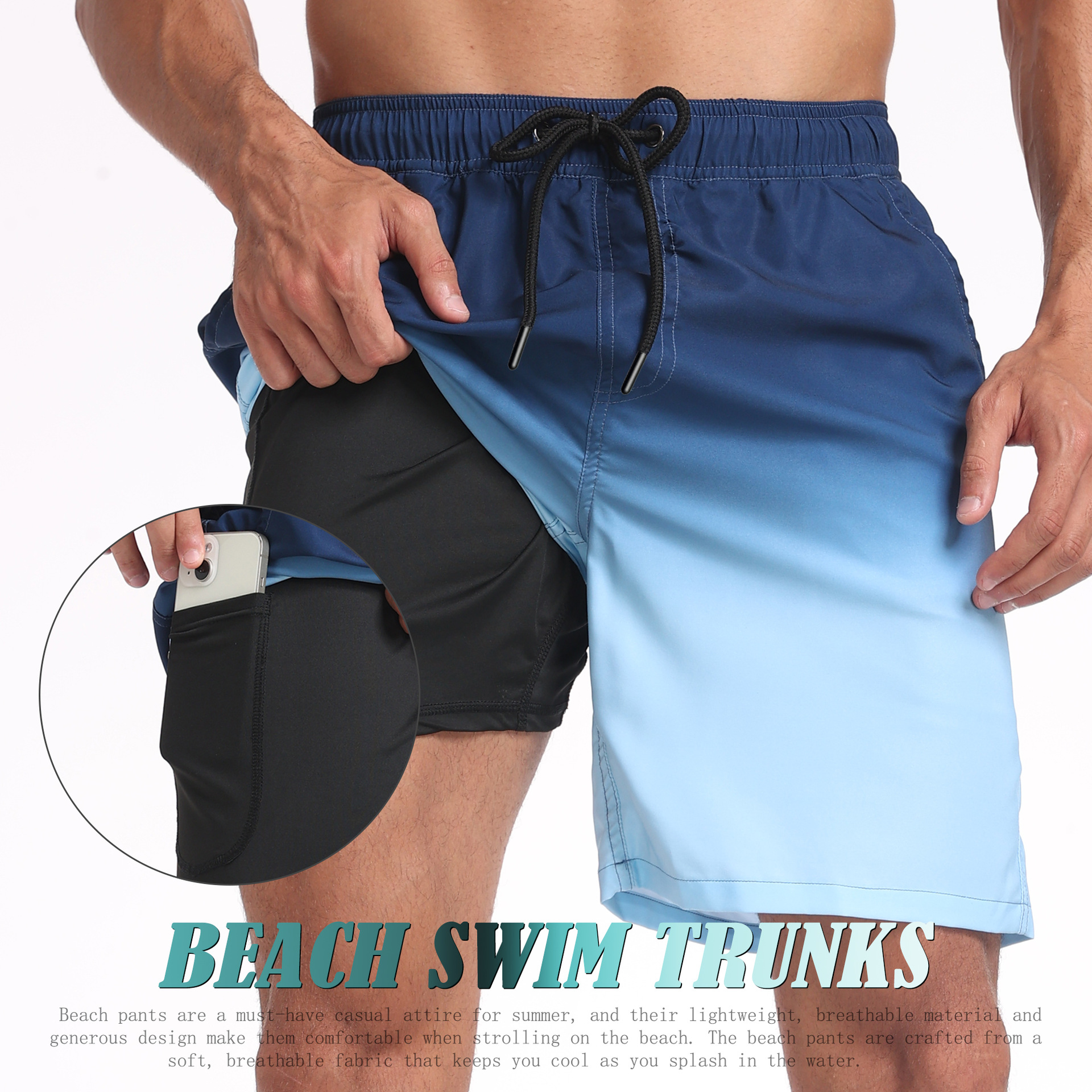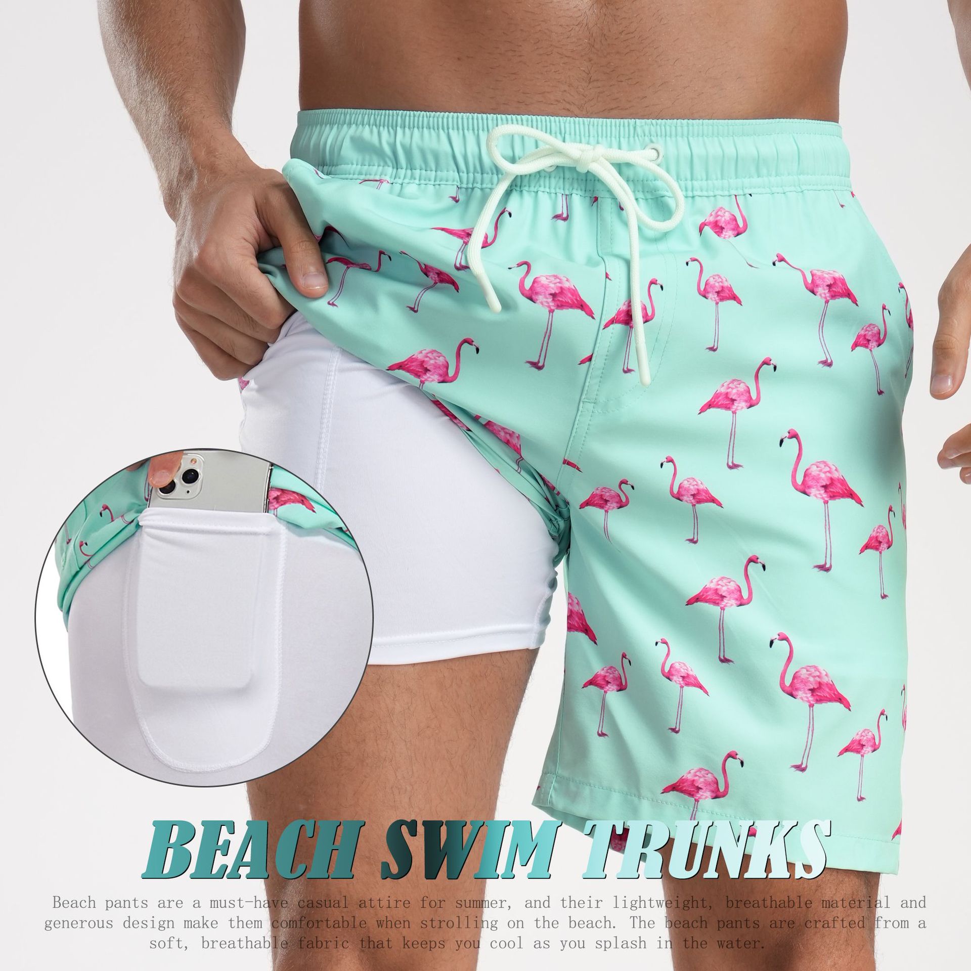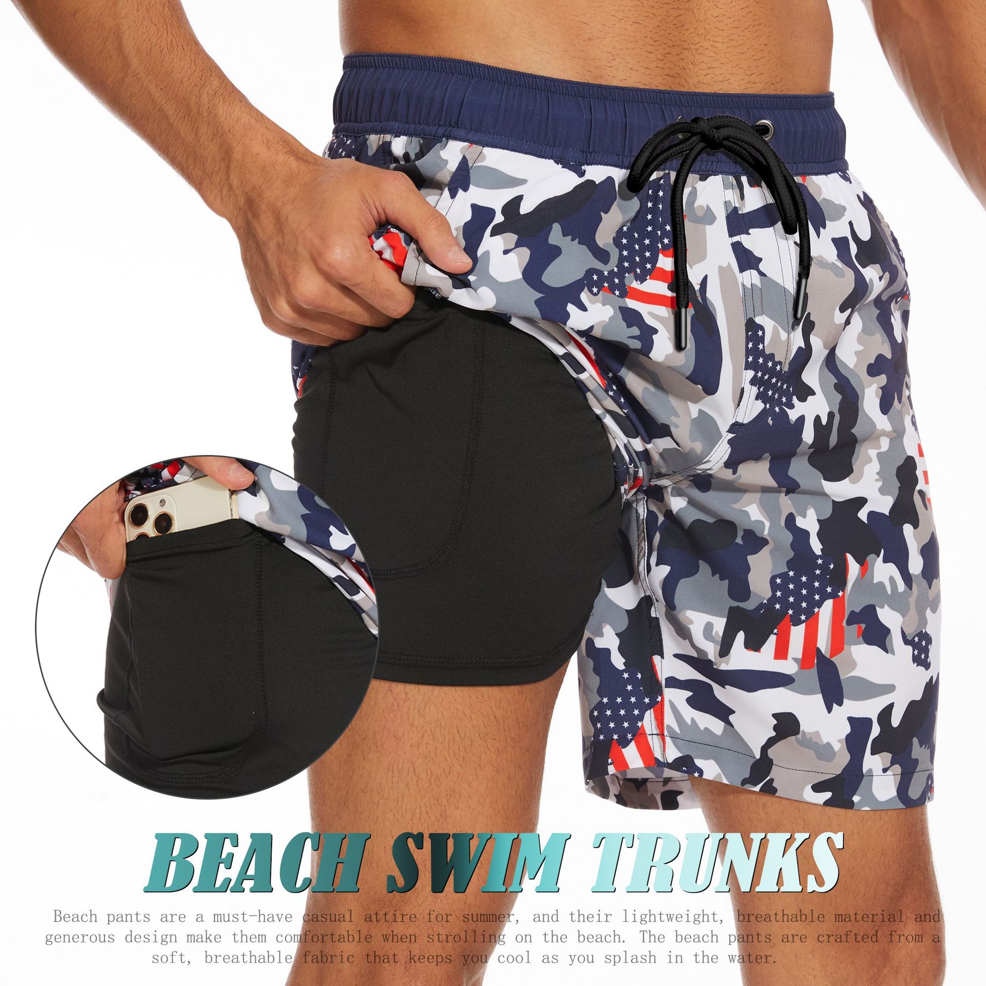 크로스 국경 대외 무역 여름 새로운 남자의 반바지 패션 홀리데이 비치 바지 남자의 플러스 사이즈 4 코너 우유 실크 내부