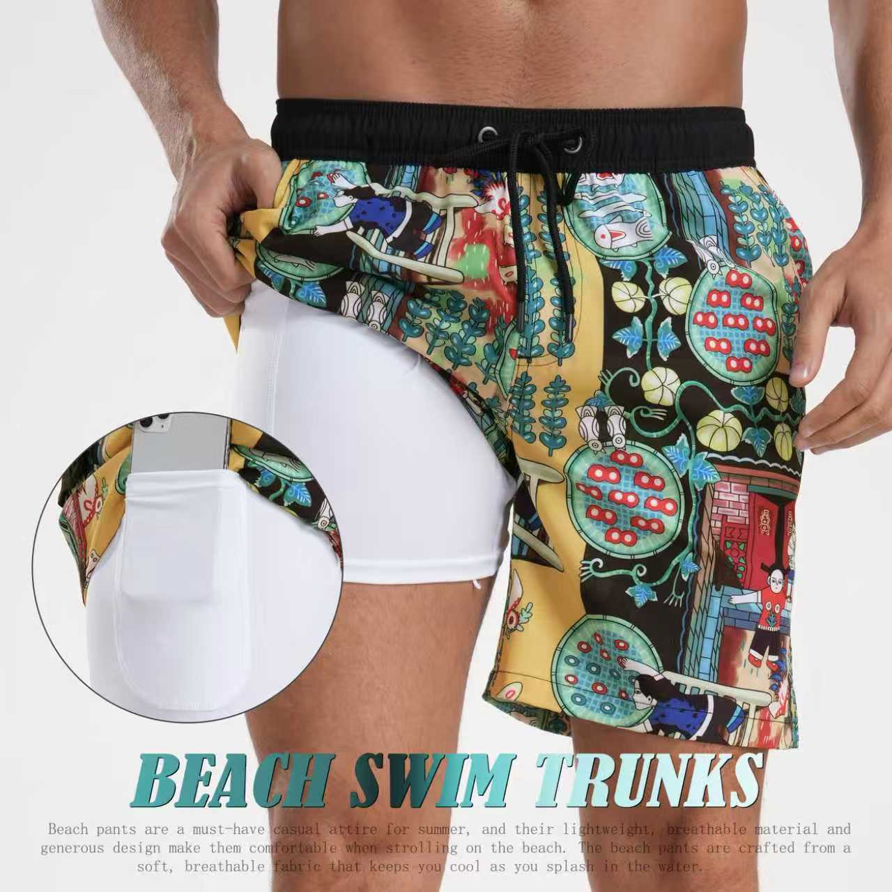 크로스 국경 대외 무역 여름 새로운 남자의 반바지 패션 홀리데이 비치 바지 남자의 플러스 사이즈 4 코너 우유 실크 내부스토어 가기