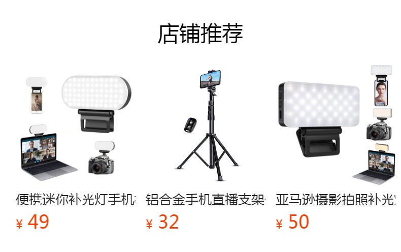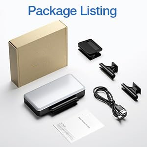 【包装清单】:数码补光灯、三款夹头(适用于落地架、桌面、相机、摄影机)、电源线、说明书、包装盒。(可定制logo)