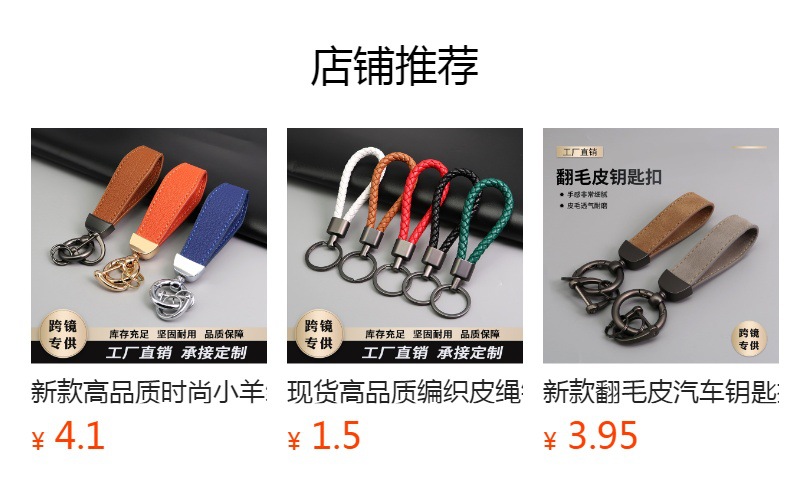 국경을 넘는 인기있는 다채로운 가죽 열쇠 고리 끈, 세련된 수제 허리 걸이, 창의적인 땋은 로프 자동차 열쇠 고리스토어 가기