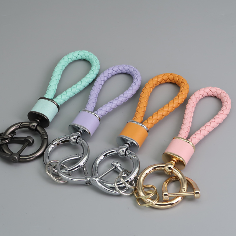 국경을 넘는 인기있는 다채로운 가죽 열쇠 고리 끈, 세련된 수제 허리 걸이, 창의적인 땋은 로프 자동차 열쇠 고리