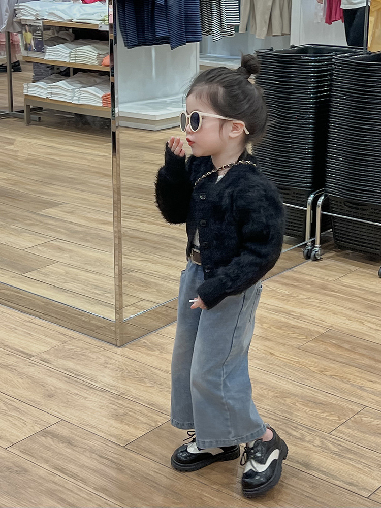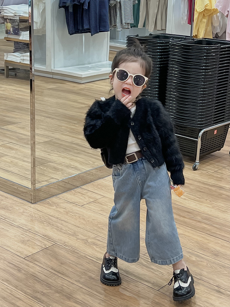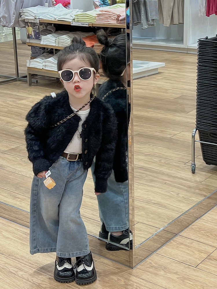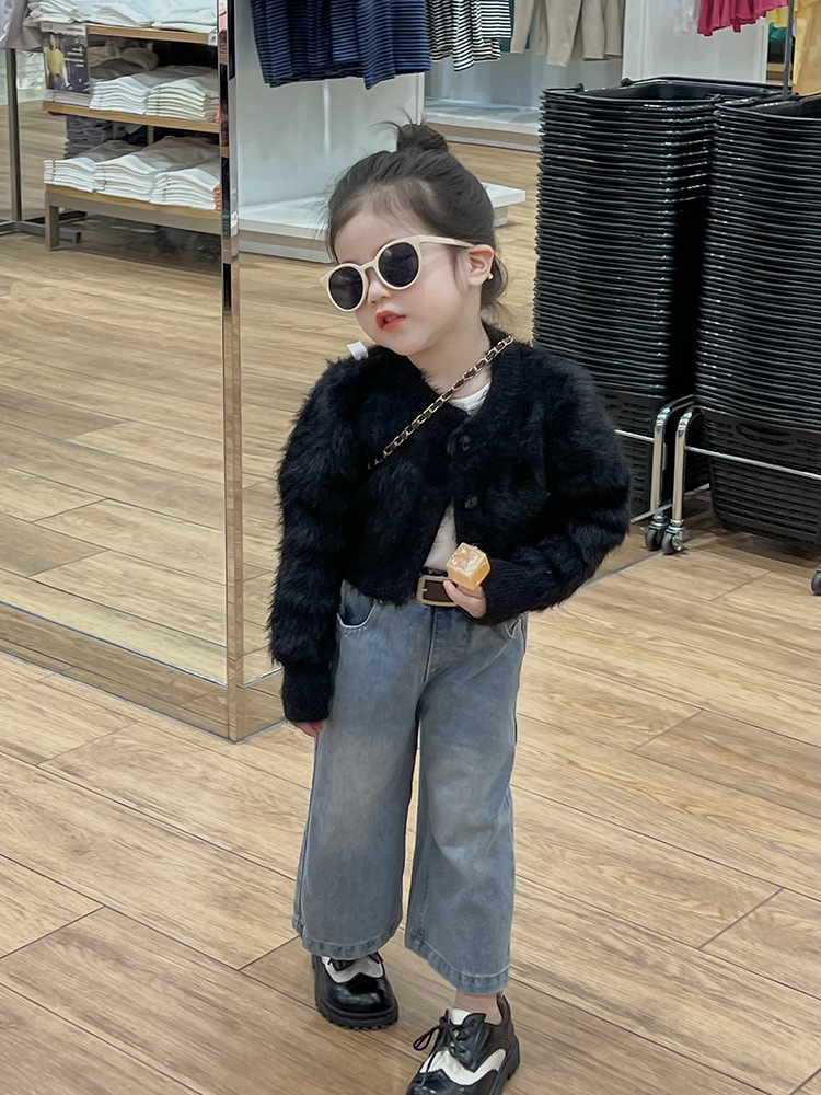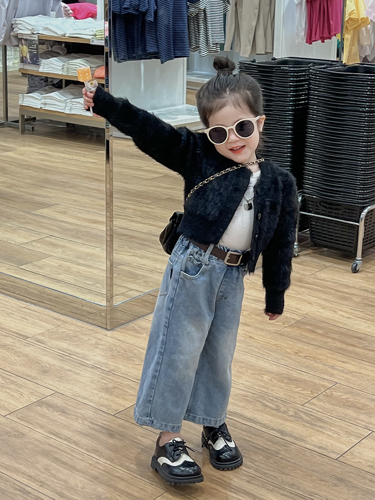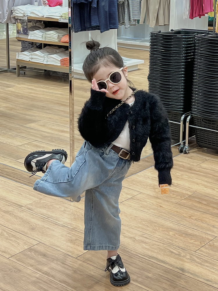 여아 봄과 가을 새로운 한국 스타일 모조 밍크 벨벳 스웨터 니트 가디건 스몰 재킷 베이스 셔츠 와이드 레그 진 트렌디스토어 가기