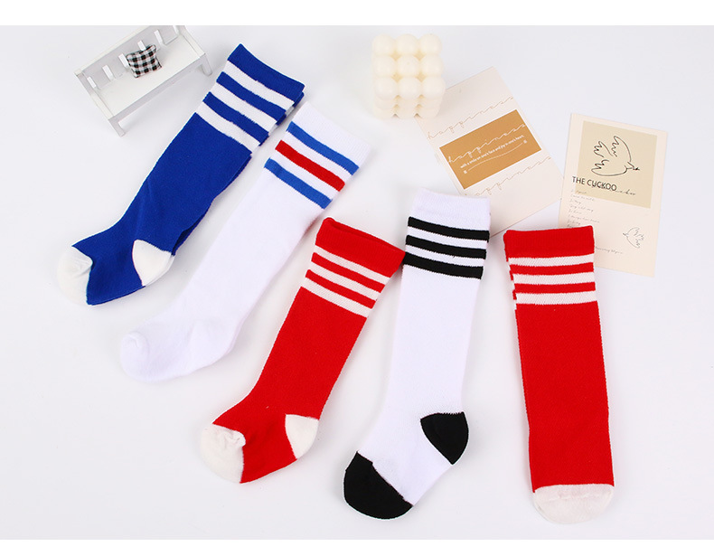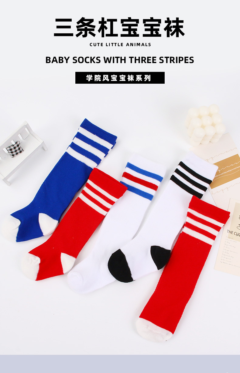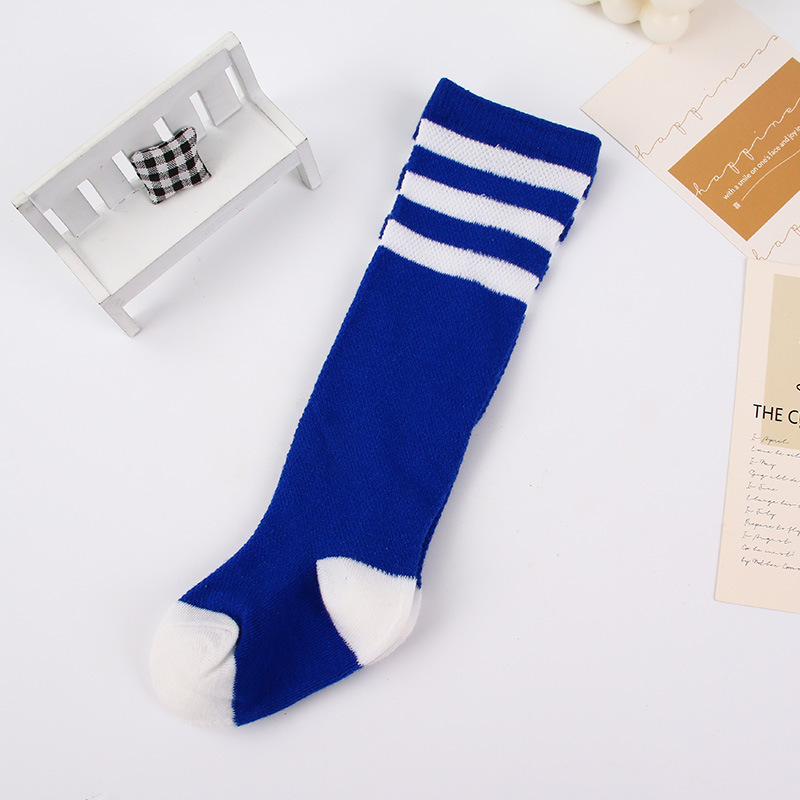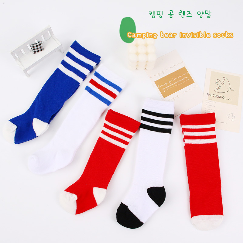 여름용 얇은 무릎 위까지 오는 아동 양말 0-3세 삼선 긴 양말 축구 양말 메쉬 아기 모기 방지 양말 트렌디