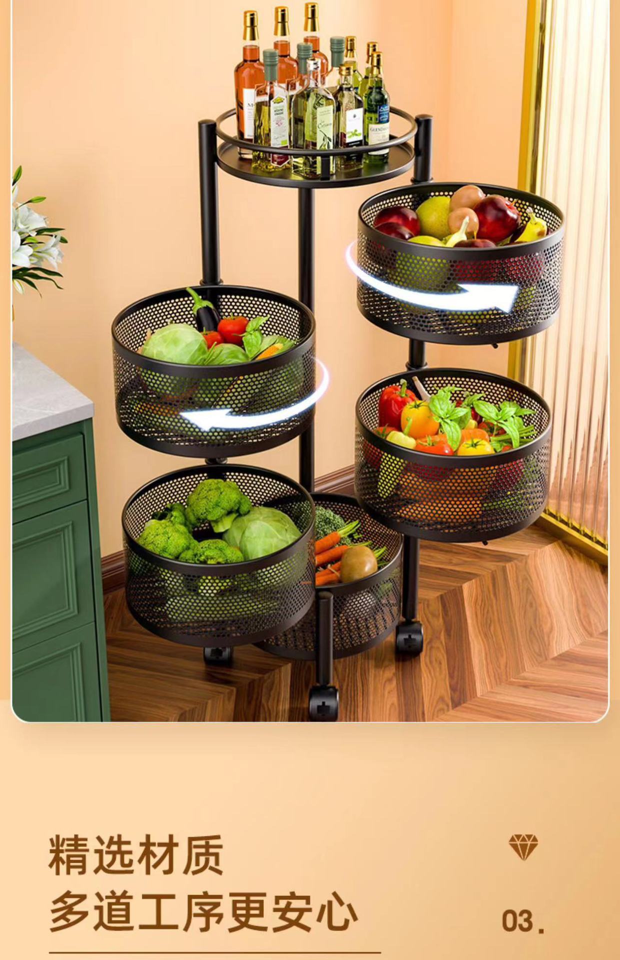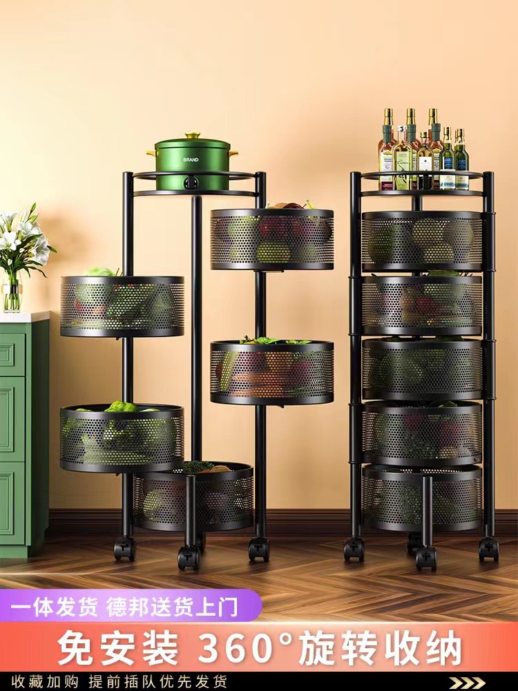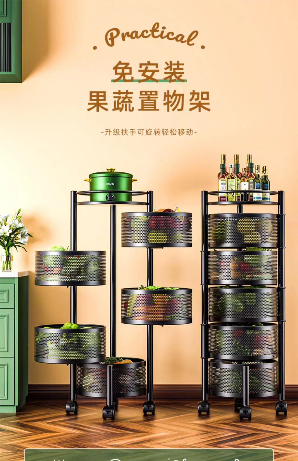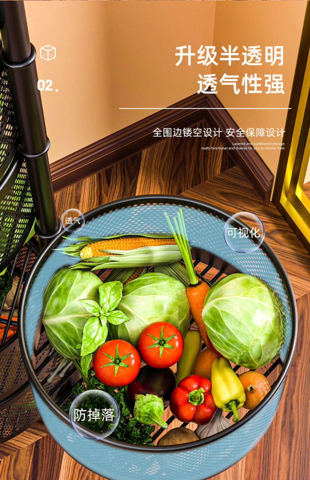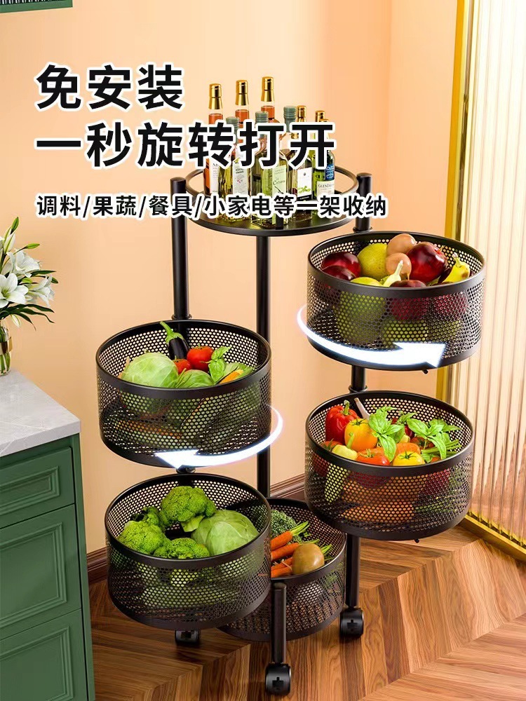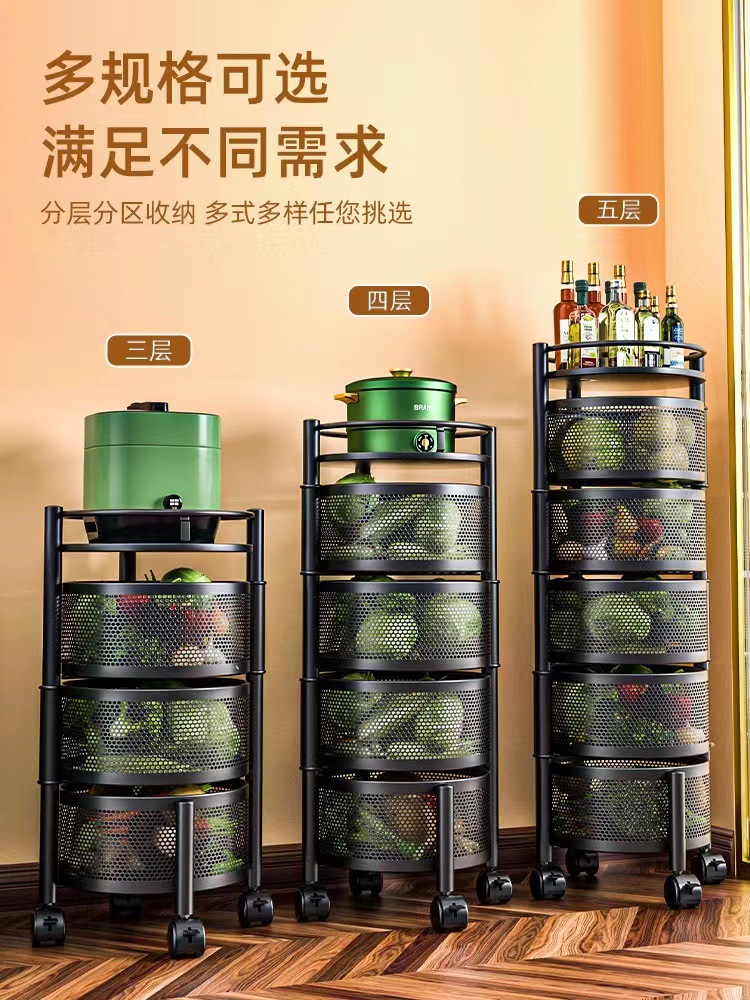 주방 회전 스토리지 랙 바닥 스탠딩 다층 야채 보관 선반 가정용 이동식 과일 및 야채 바구니 유물스토어 가기