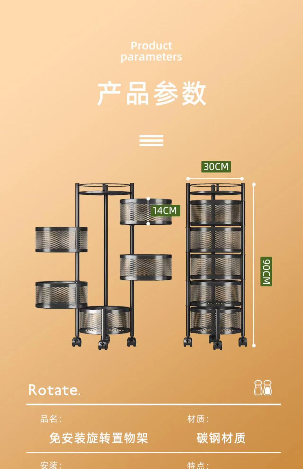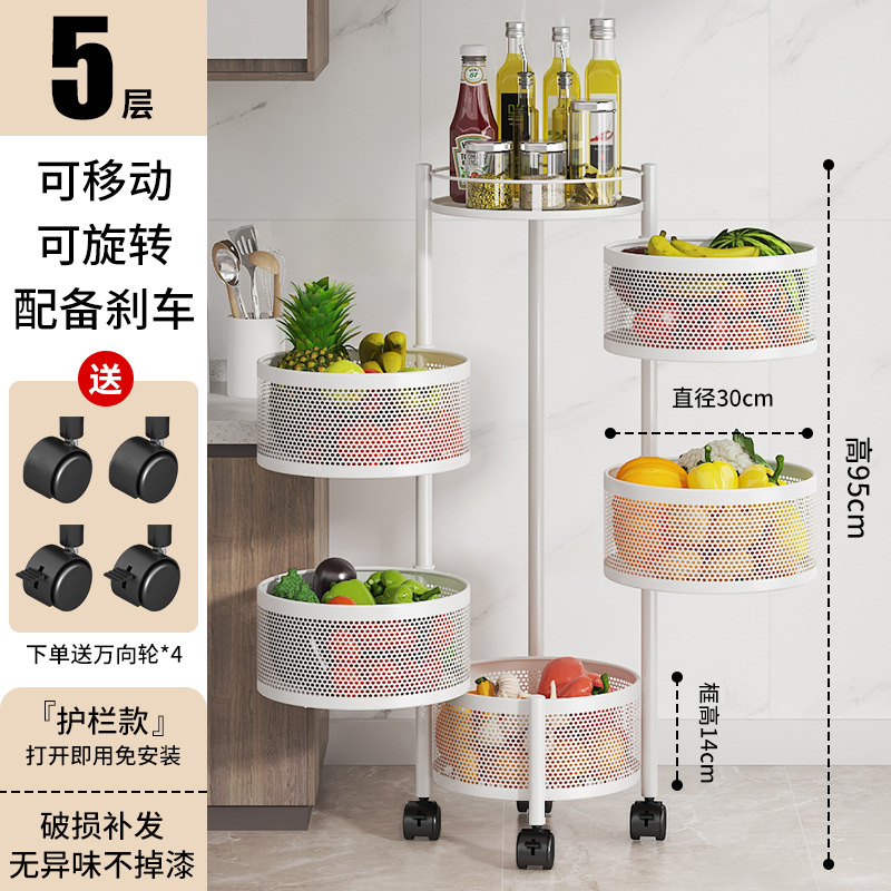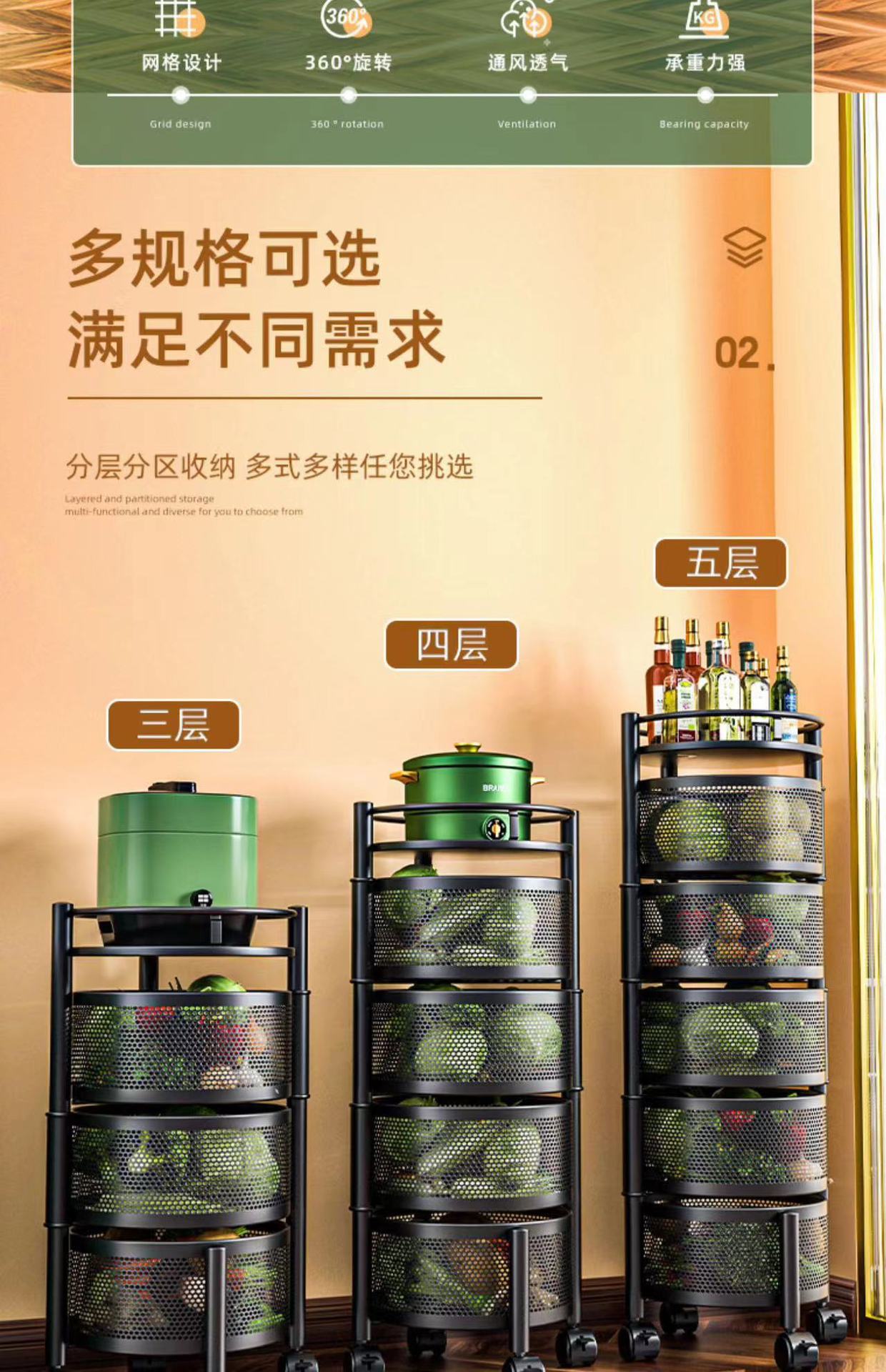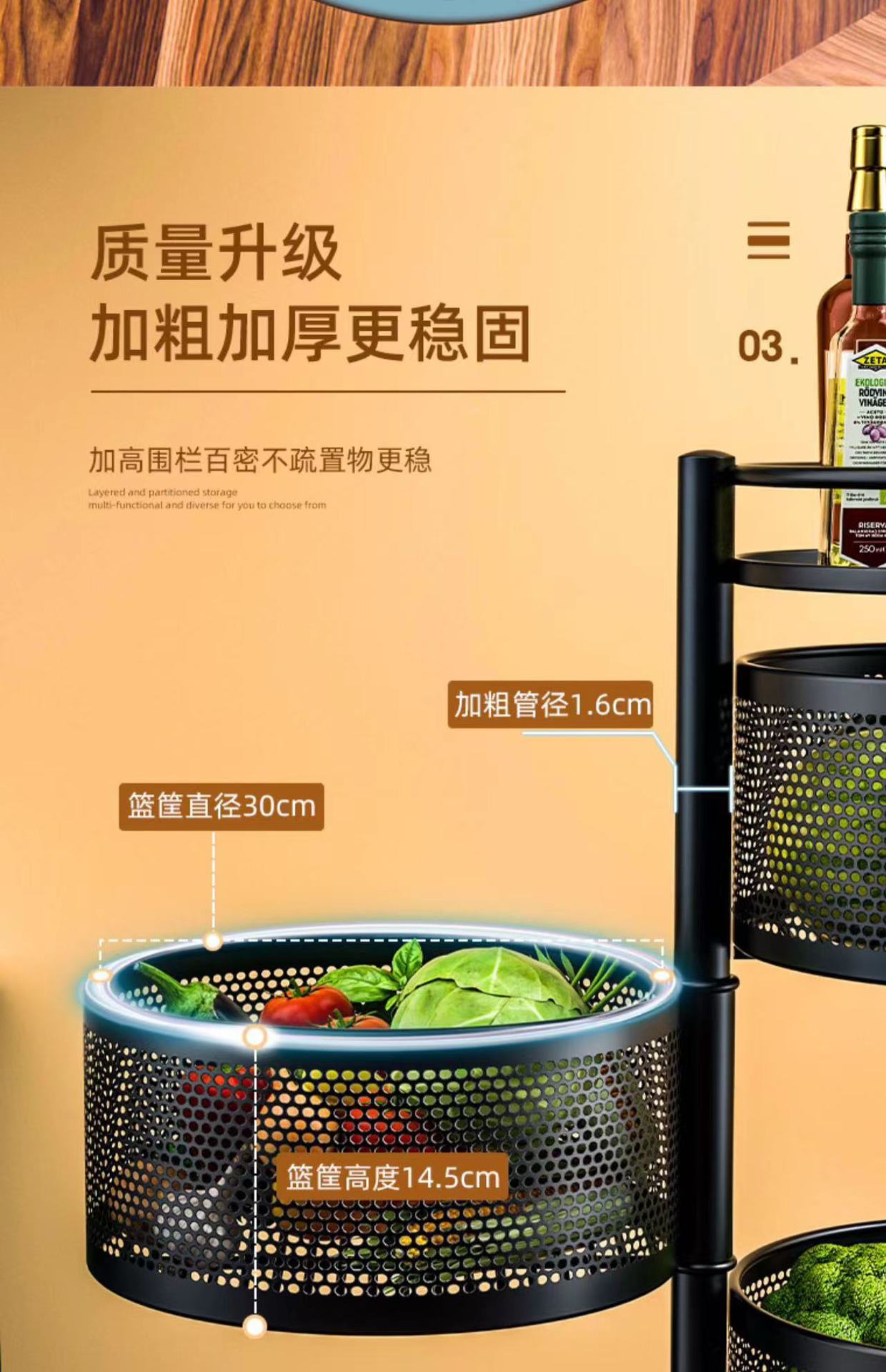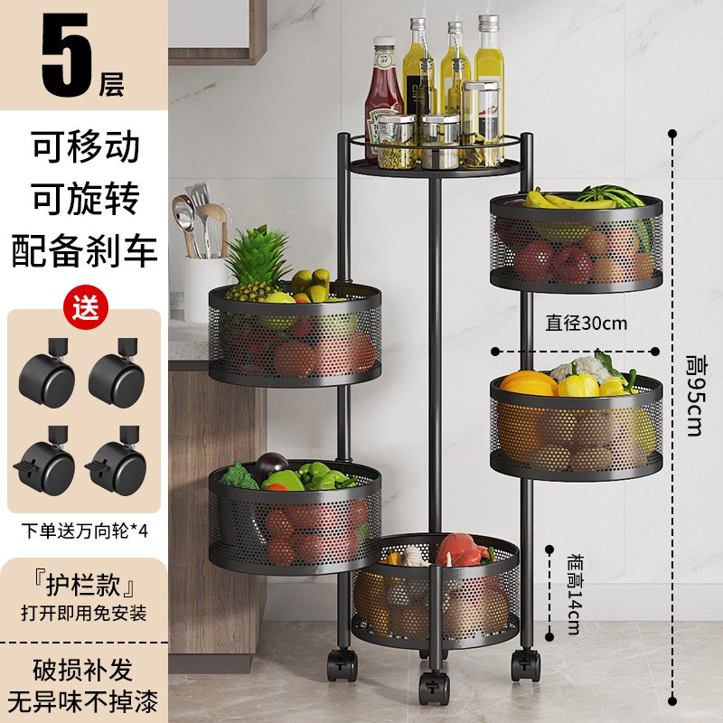 주방 회전 스토리지 랙 바닥 스탠딩 다층 야채 보관 선반 가정용 이동식 과일 및 야채 바구니 유물스토어 가기