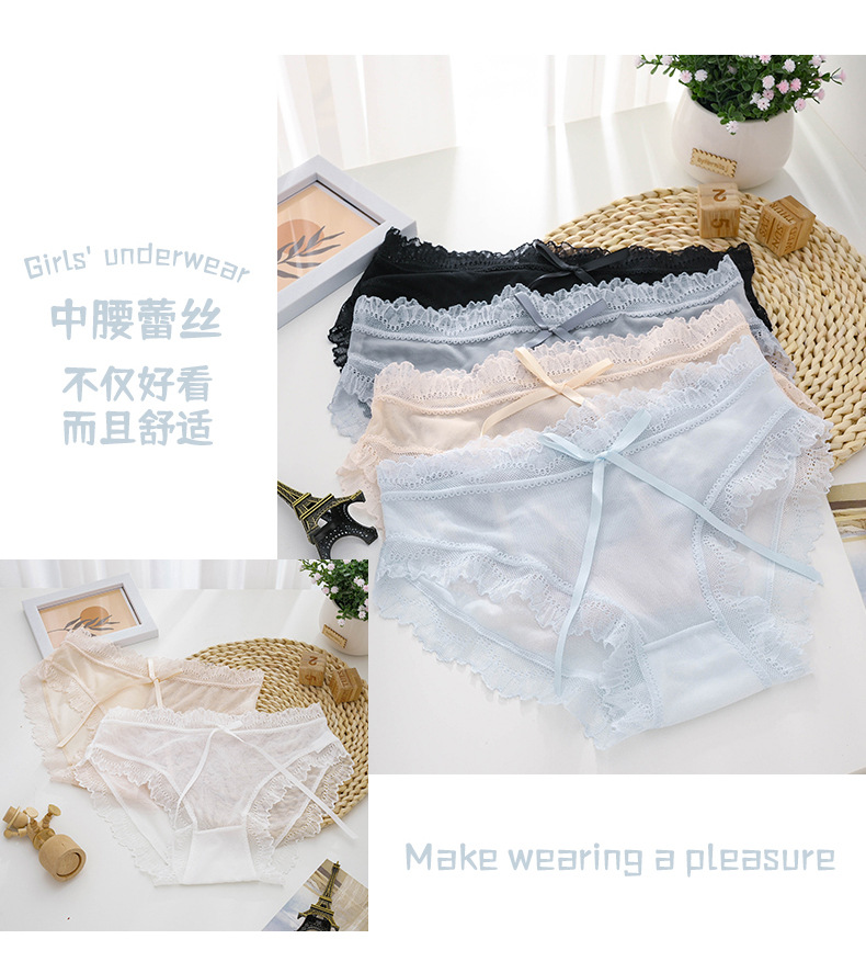 일본 순수 섹시 레이스 속옷 여성용 이음매없는 면 항균 통기성 속건 허리 소녀 브리프 도매스토어 가기