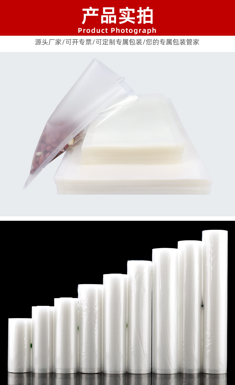 진공백 재고 있음, 두꺼운 투명 밀봉백, 가정용 조리식품 신선도 유지백, 질감 있는 진공 식품 포장백, 맞춤 제작 가능스토어 가기