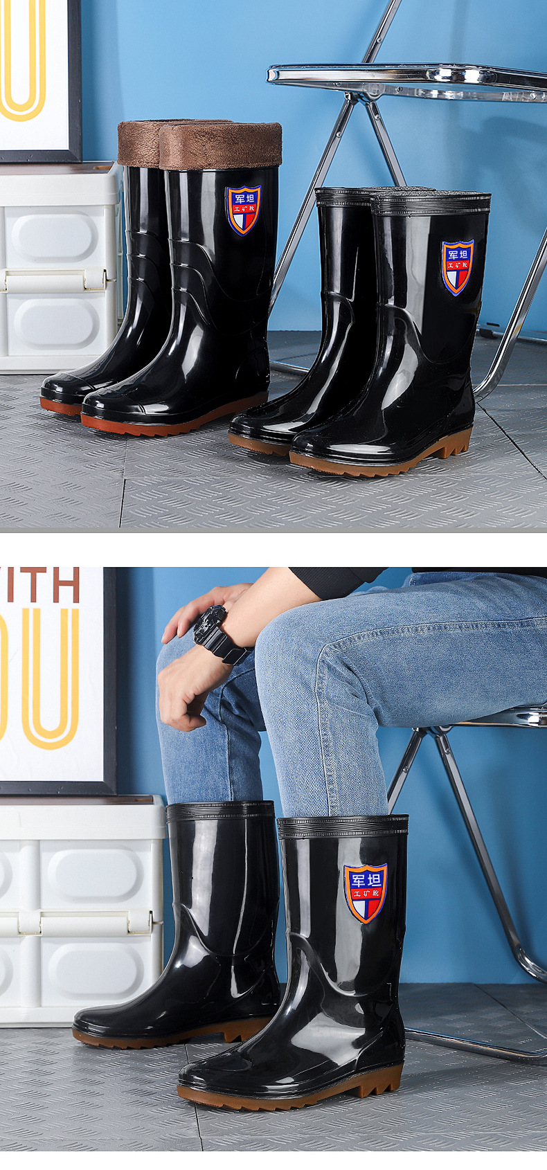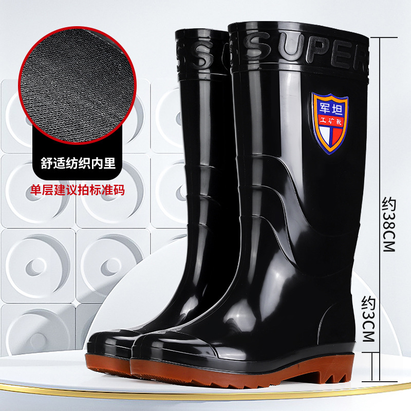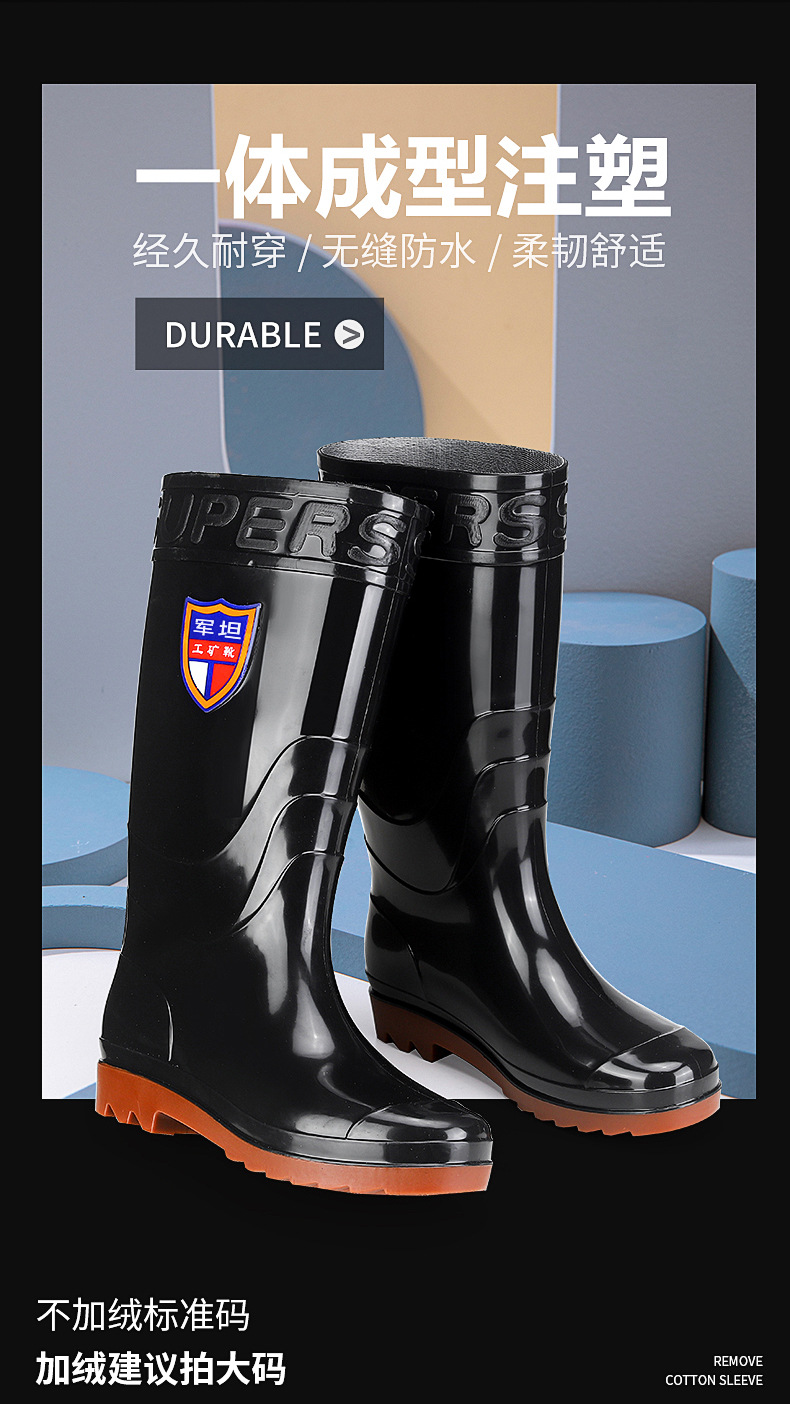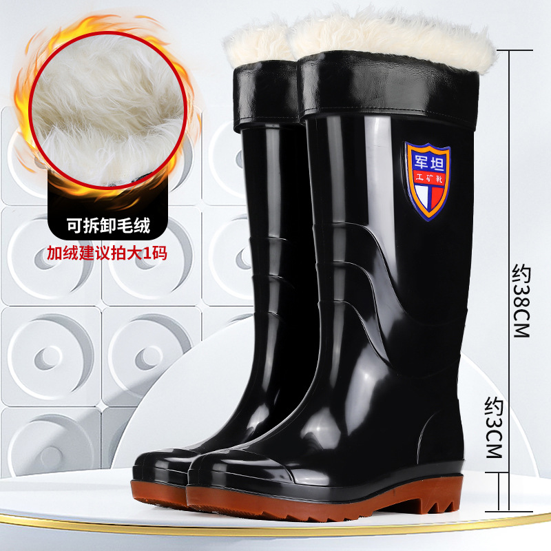 두꺼운 군용 하이탑 레인부츠, 내마모성 고무 밑창 레인슈즈, 남성용 보온성, 산·알칼리 방지, 미끄럼 방지, 건설 현장용 하이탑 워터부츠