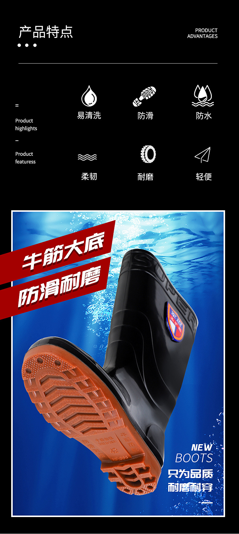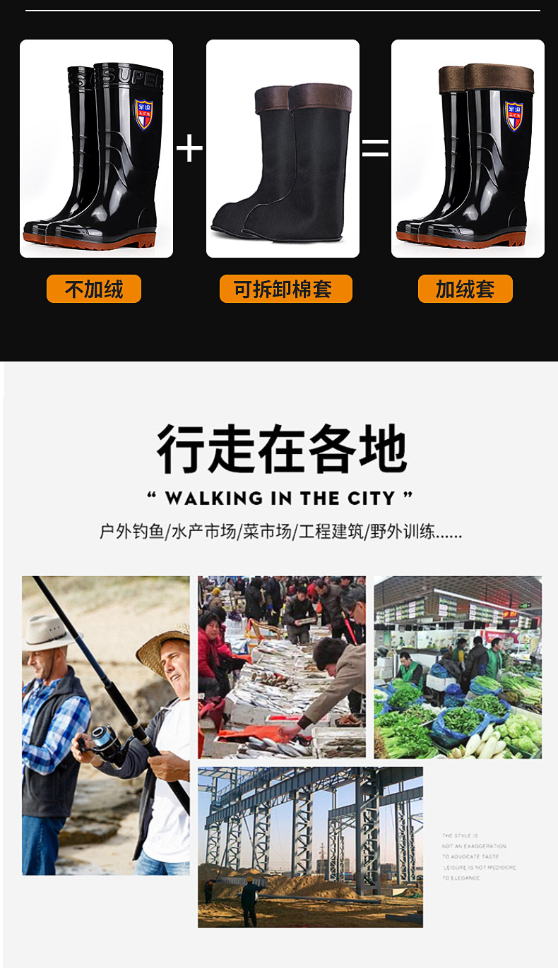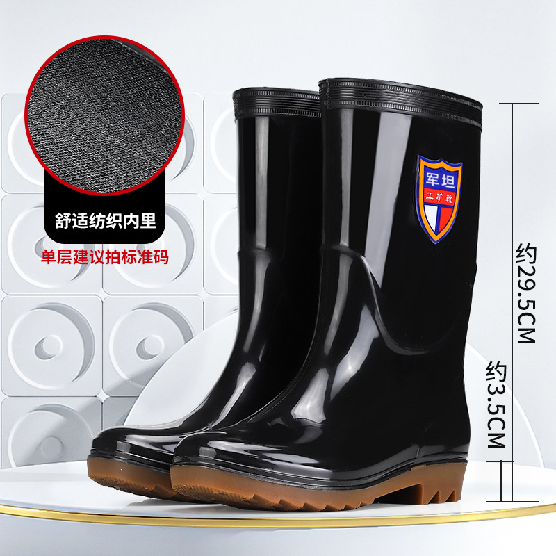 두꺼운 군용 하이탑 레인부츠, 내마모성 고무 밑창 레인슈즈, 남성용 보온성, 산·알칼리 방지, 미끄럼 방지, 건설 현장용 하이탑 워터부츠