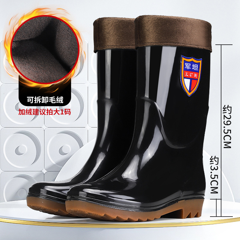 두꺼운 군용 하이탑 레인부츠, 내마모성 고무 밑창 레인슈즈, 남성용 보온성, 산·알칼리 방지, 미끄럼 방지, 건설 현장용 하이탑 워터부츠스토어 가기