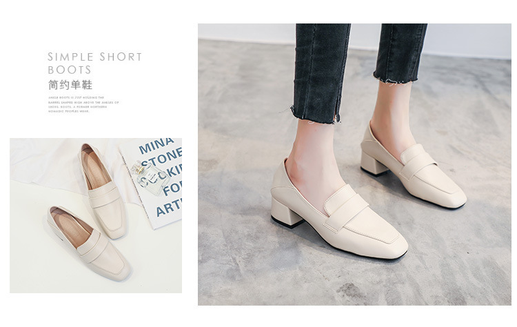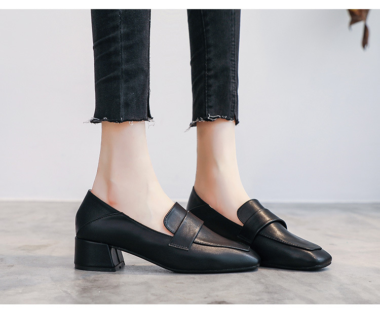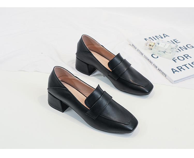 프랑스 틈새 영국 스타일 작은 가죽 신발 여성용 부드러운 가죽 미드 힐 슬립온 작업 신발 단층 신발 여성용 2023 봄 가을 신상품