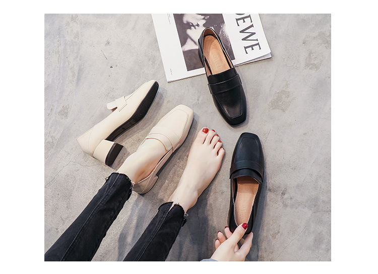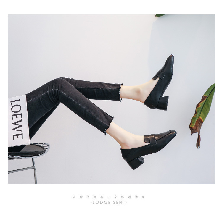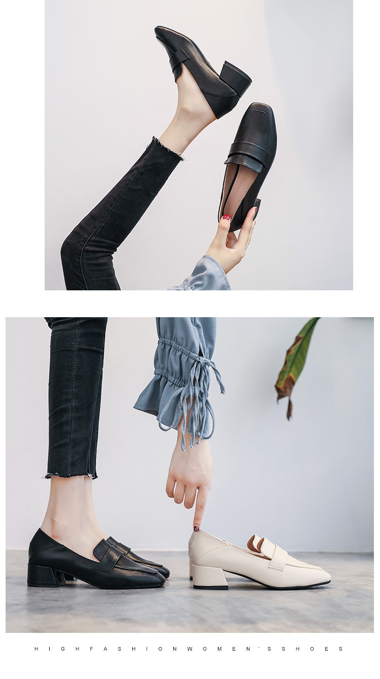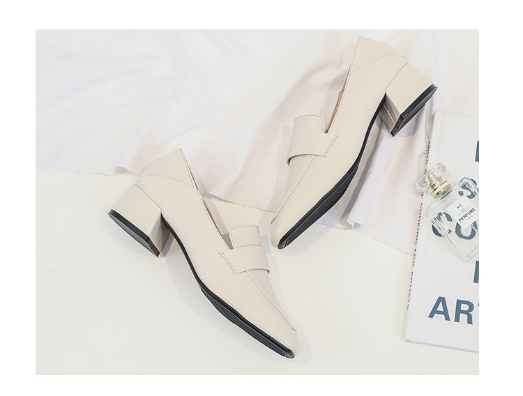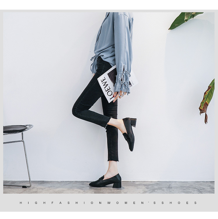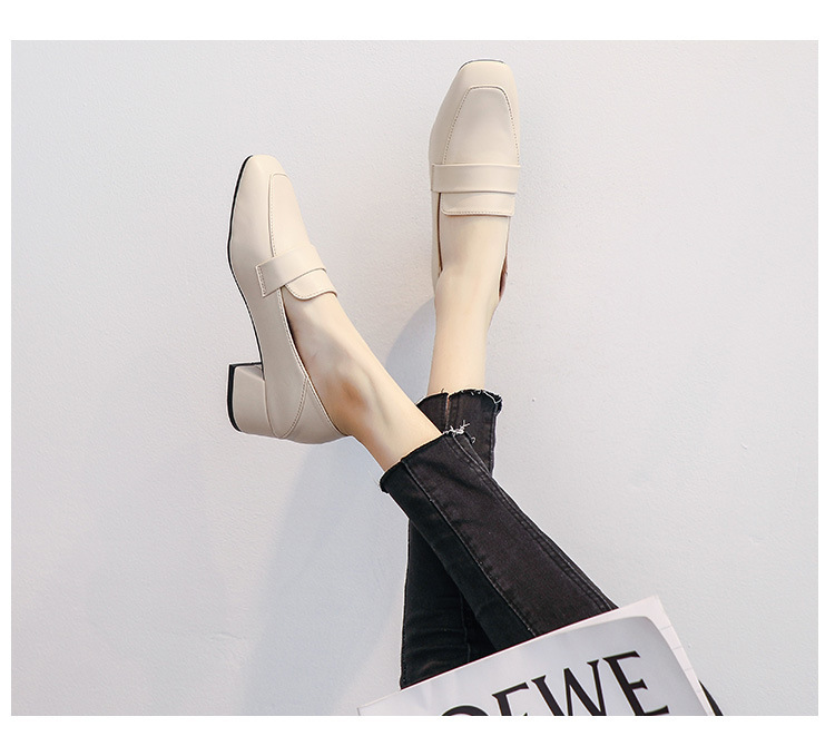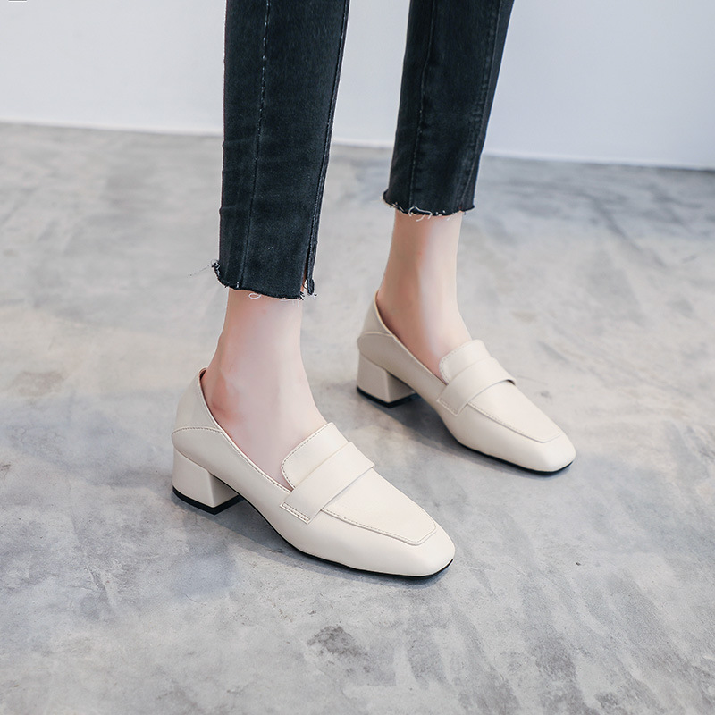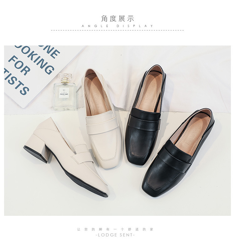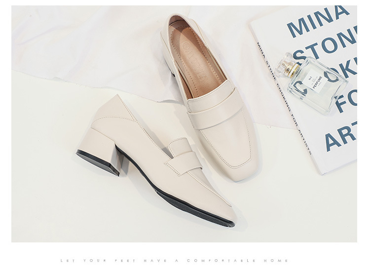 프랑스 틈새 영국 스타일 작은 가죽 신발 여성용 부드러운 가죽 미드 힐 슬립온 작업 신발 단층 신발 여성용 2023 봄 가을 신상품스토어 가기