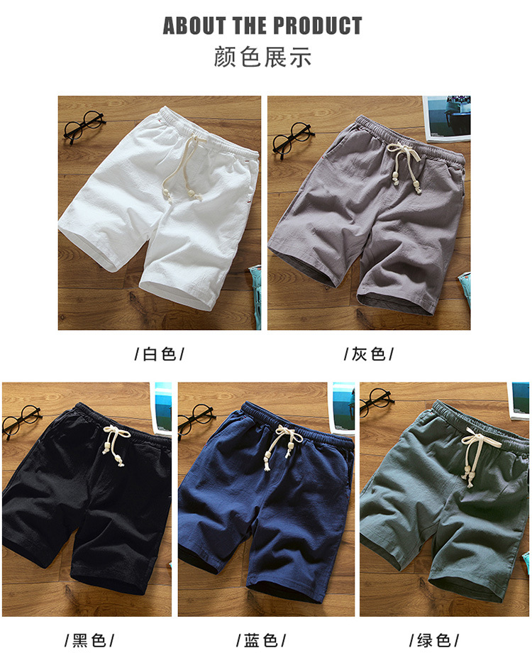 여름 한국 스타일 코튼 린넨 반바지 남성용 얇은 편안한 린넨 팬츠 비즈 아우터 비치 팬츠 솔리드 컬러 만능 트렌디스토어 가기