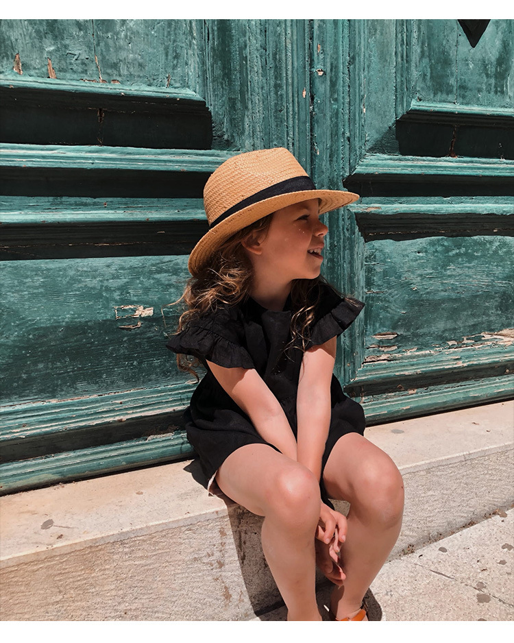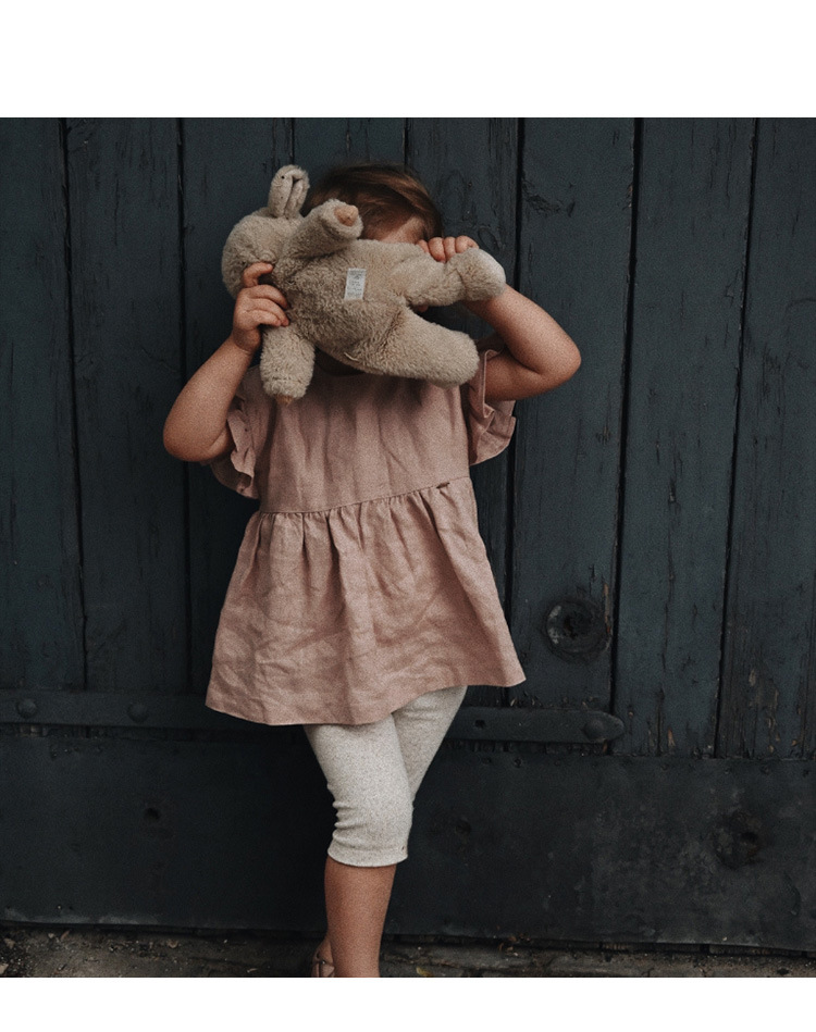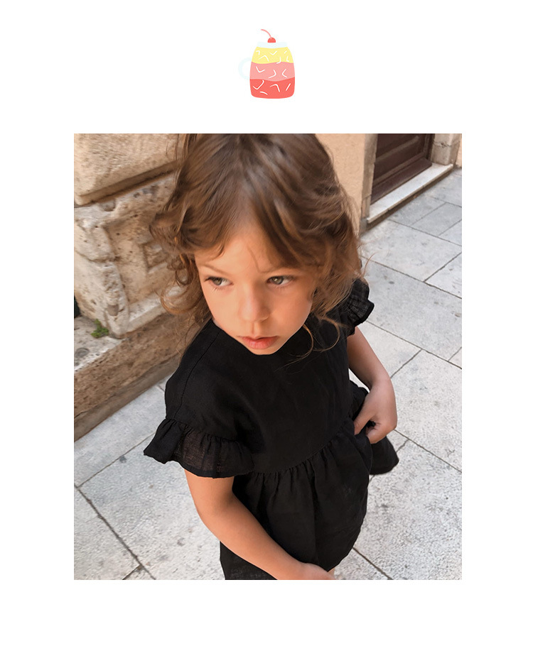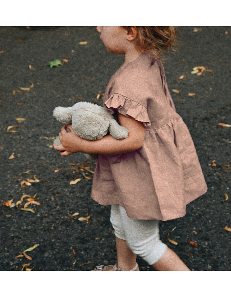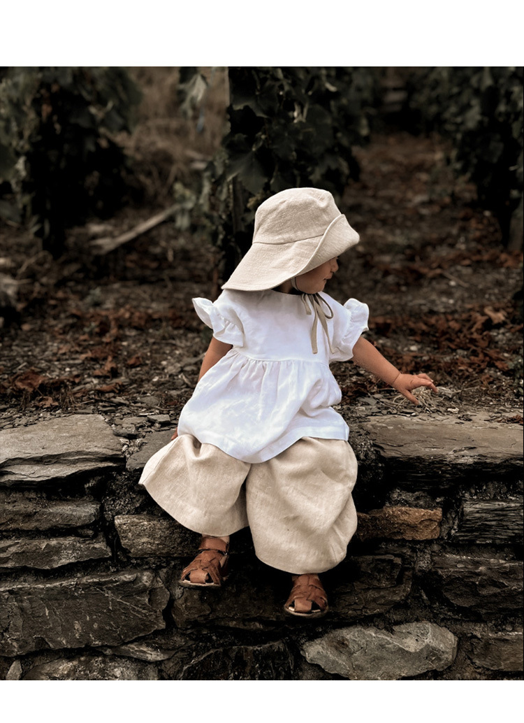 인 스타일 여아 티셔츠 여름 신상품 세련된 아기 소녀 귀여운 귀 옆 소매 스트랩 린넨 인형 셔츠 탑