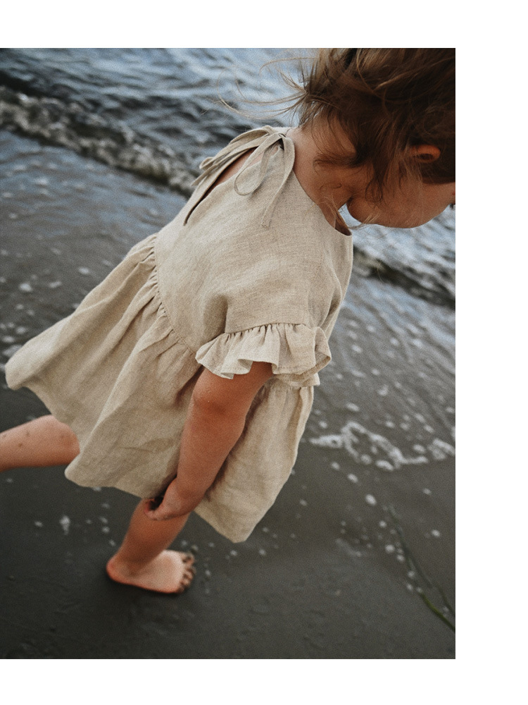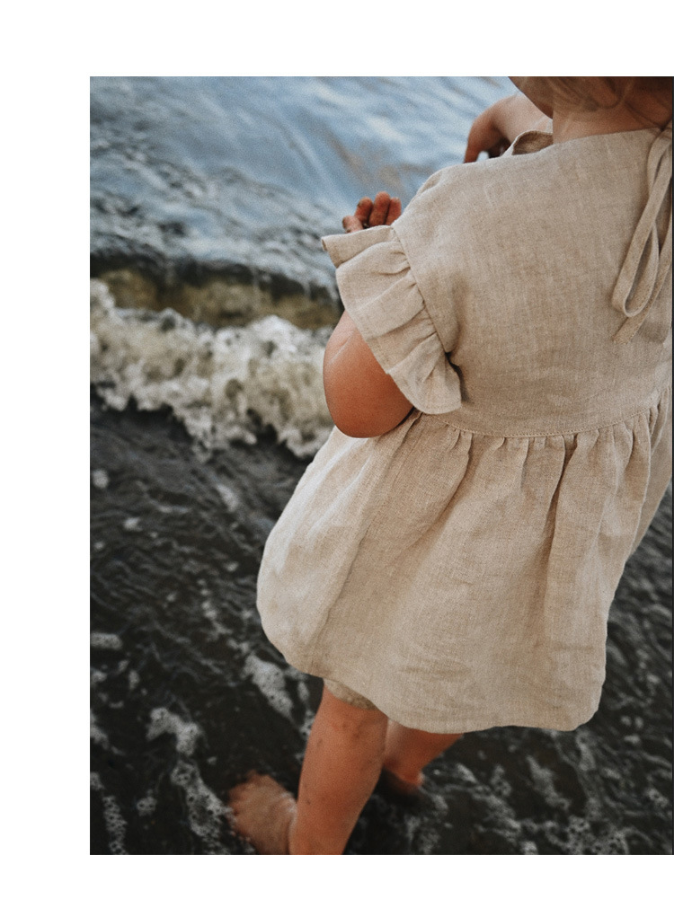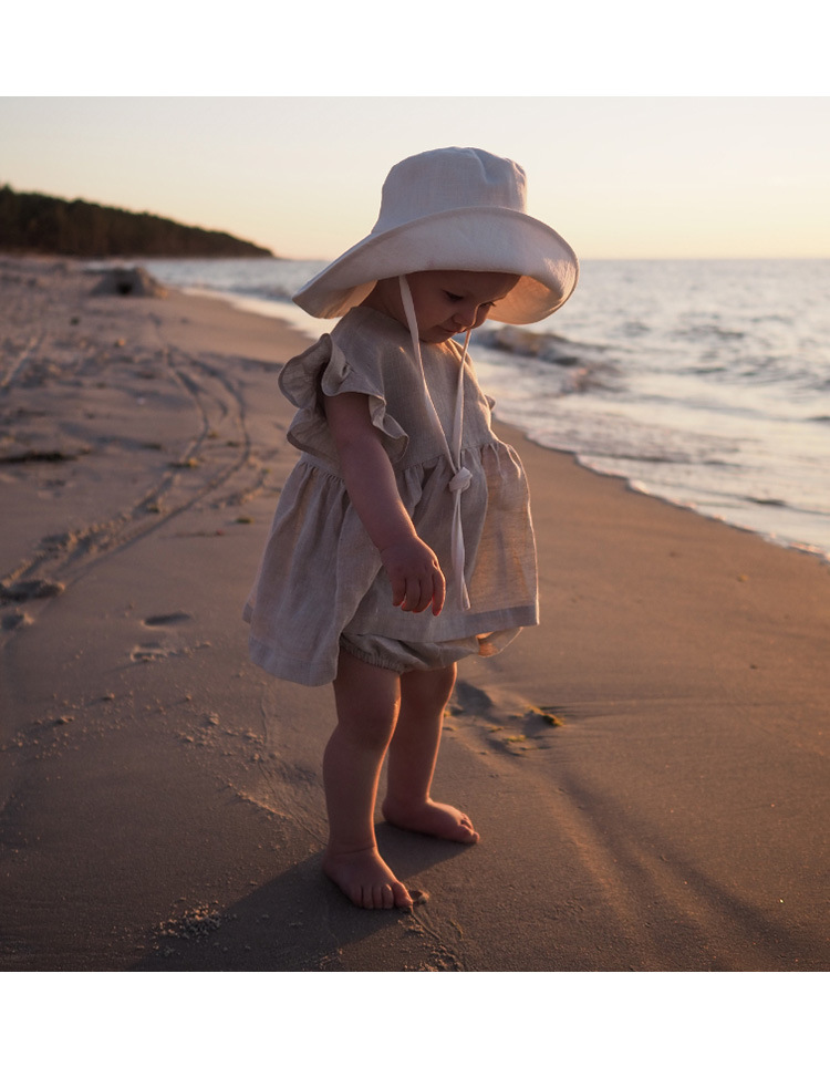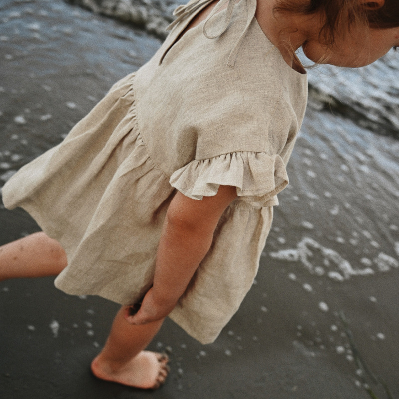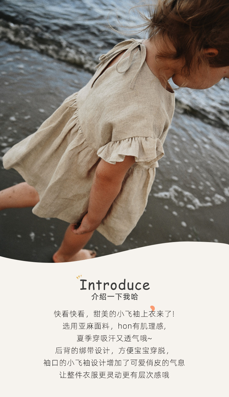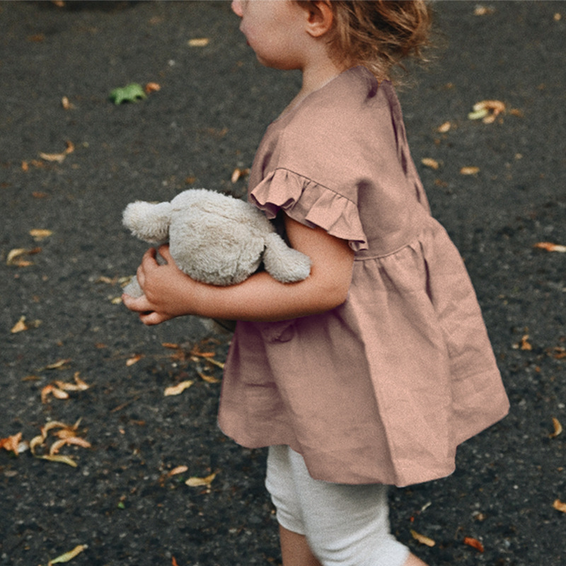 인 스타일 여아 티셔츠 여름 신상품 세련된 아기 소녀 귀여운 귀 옆 소매 스트랩 린넨 인형 셔츠 탑스토어 가기