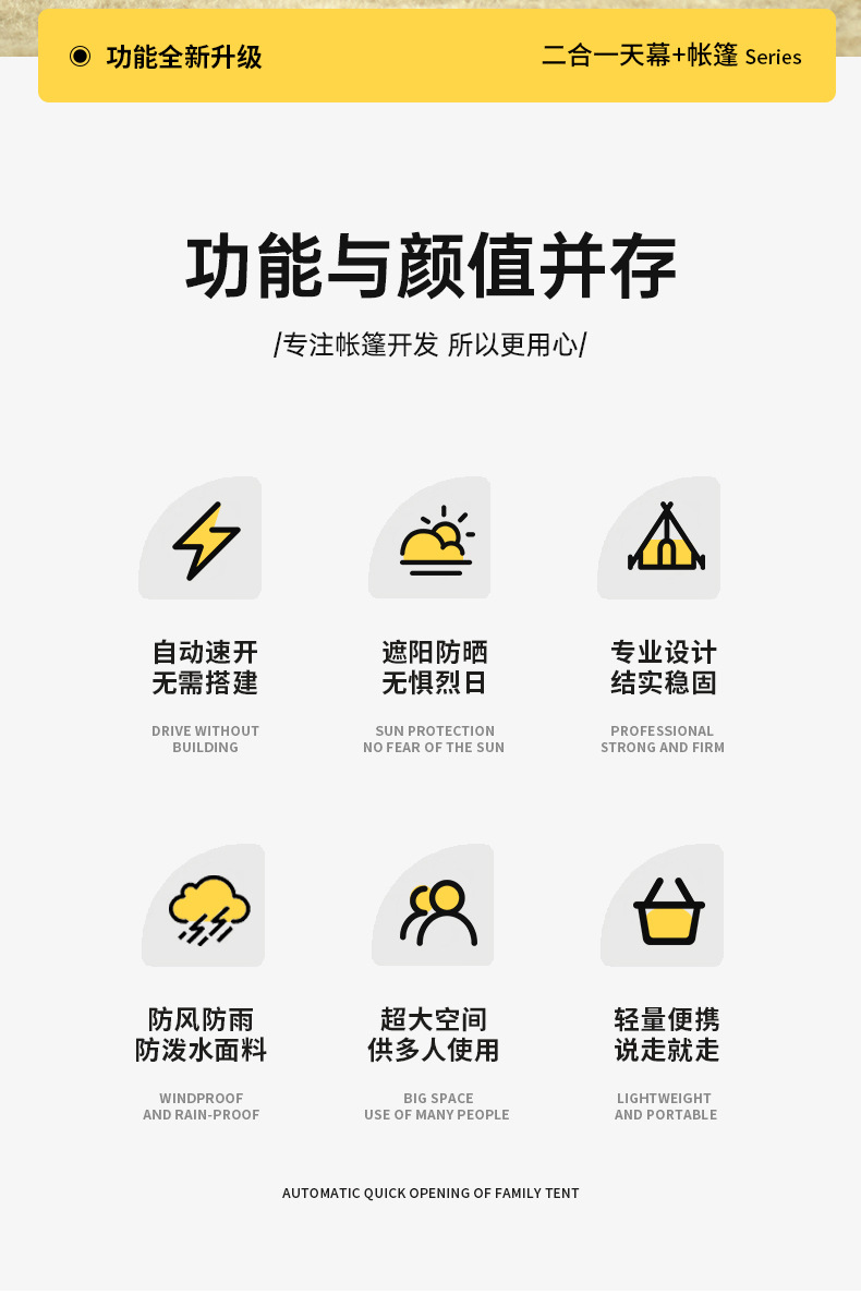 야외 텐트 캐노피 2-in -1 퀵 프리 빌딩 자동 텐트 캠핑 나들이 접이식 휴대용 자외선 차단제 방수