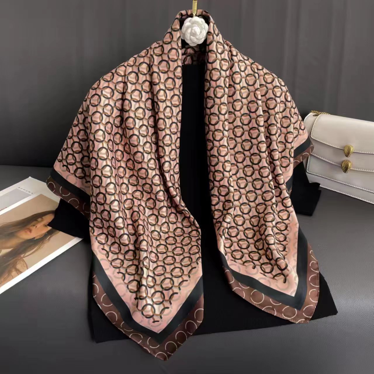 새로운 유행 실크 스카프 대마 패턴 대비 색상 90 실크 스카프 대형 사각형 스카프 패션 레저 여행 선 스크린 실크 스카프 도매