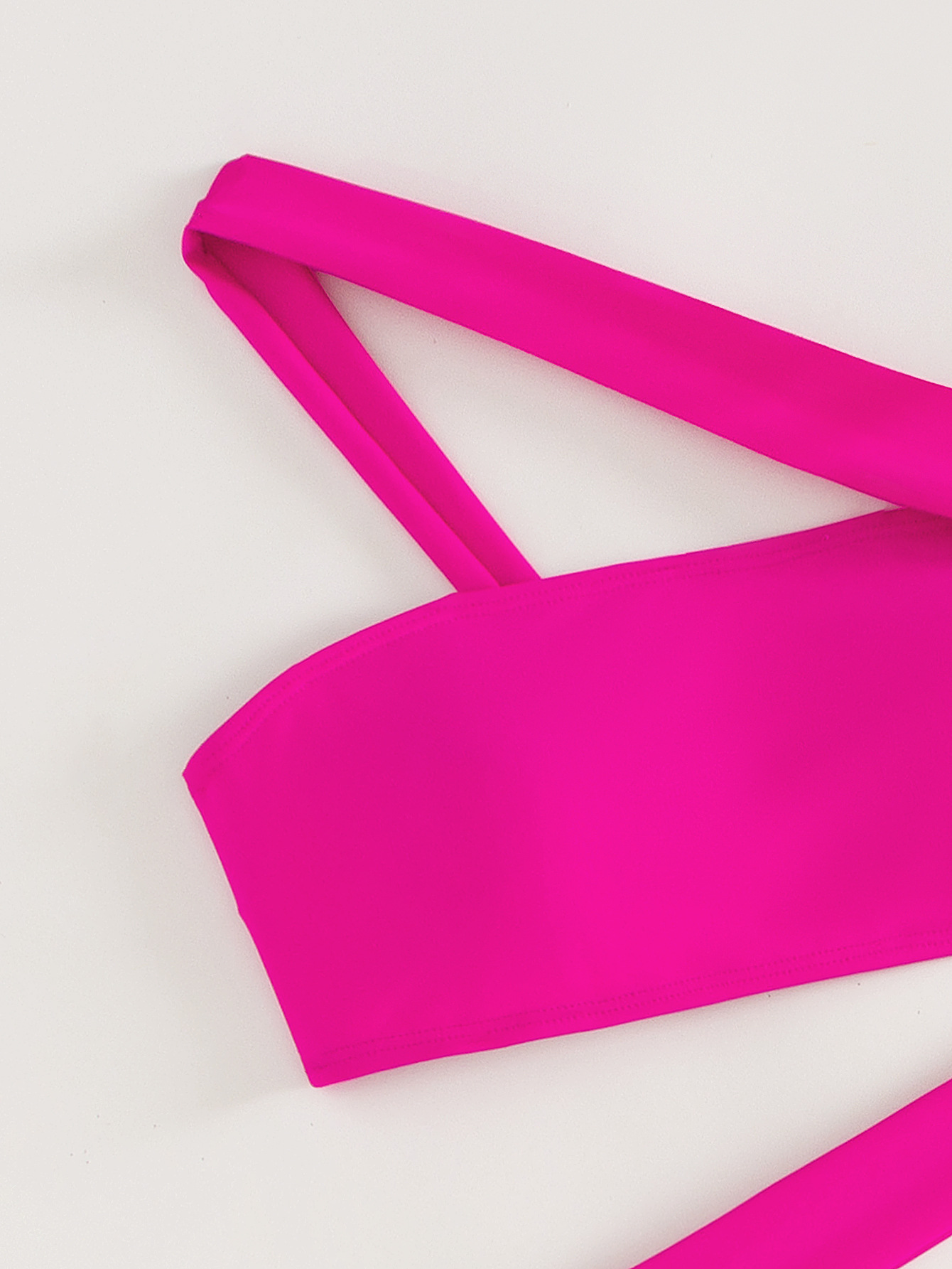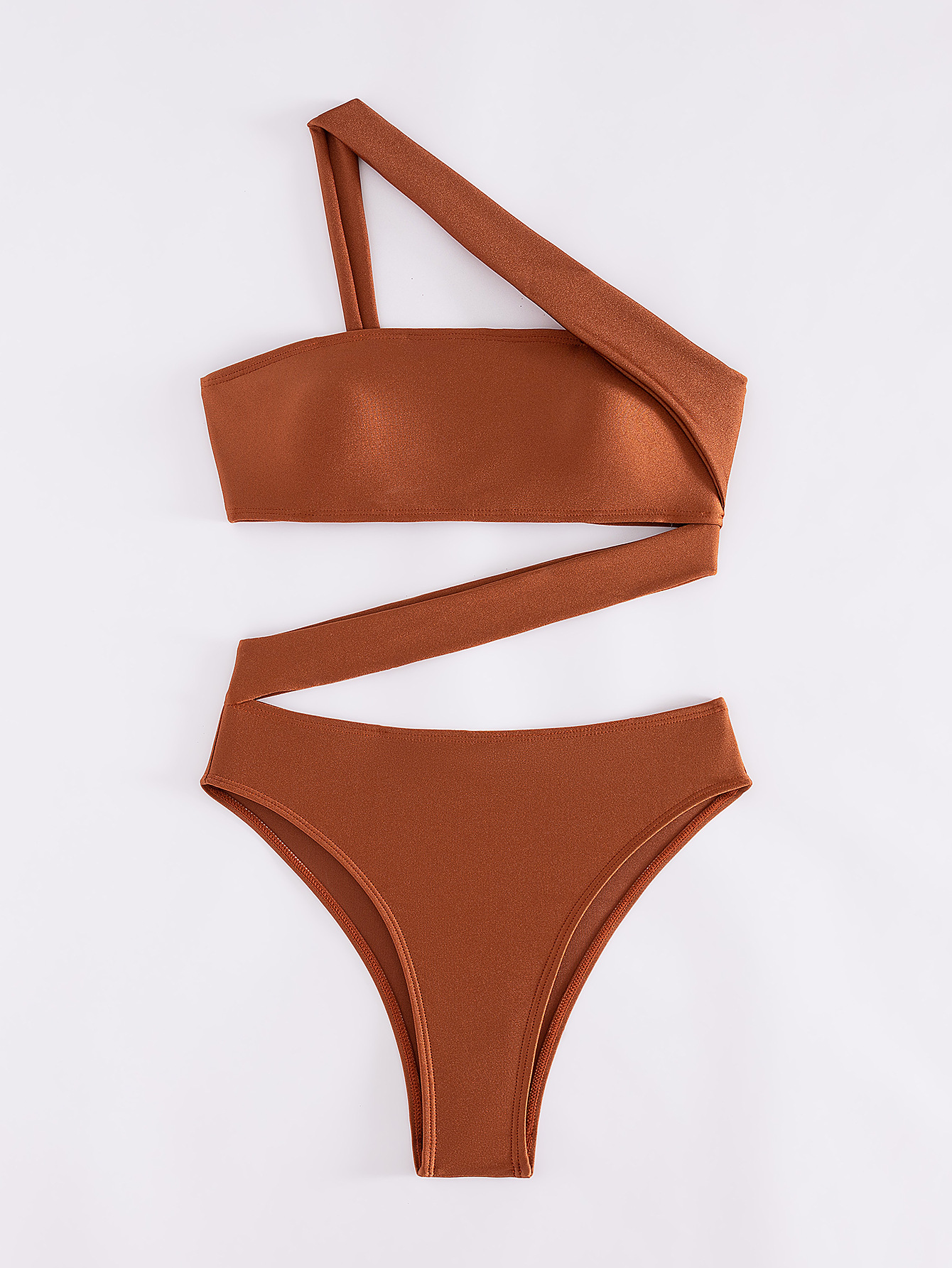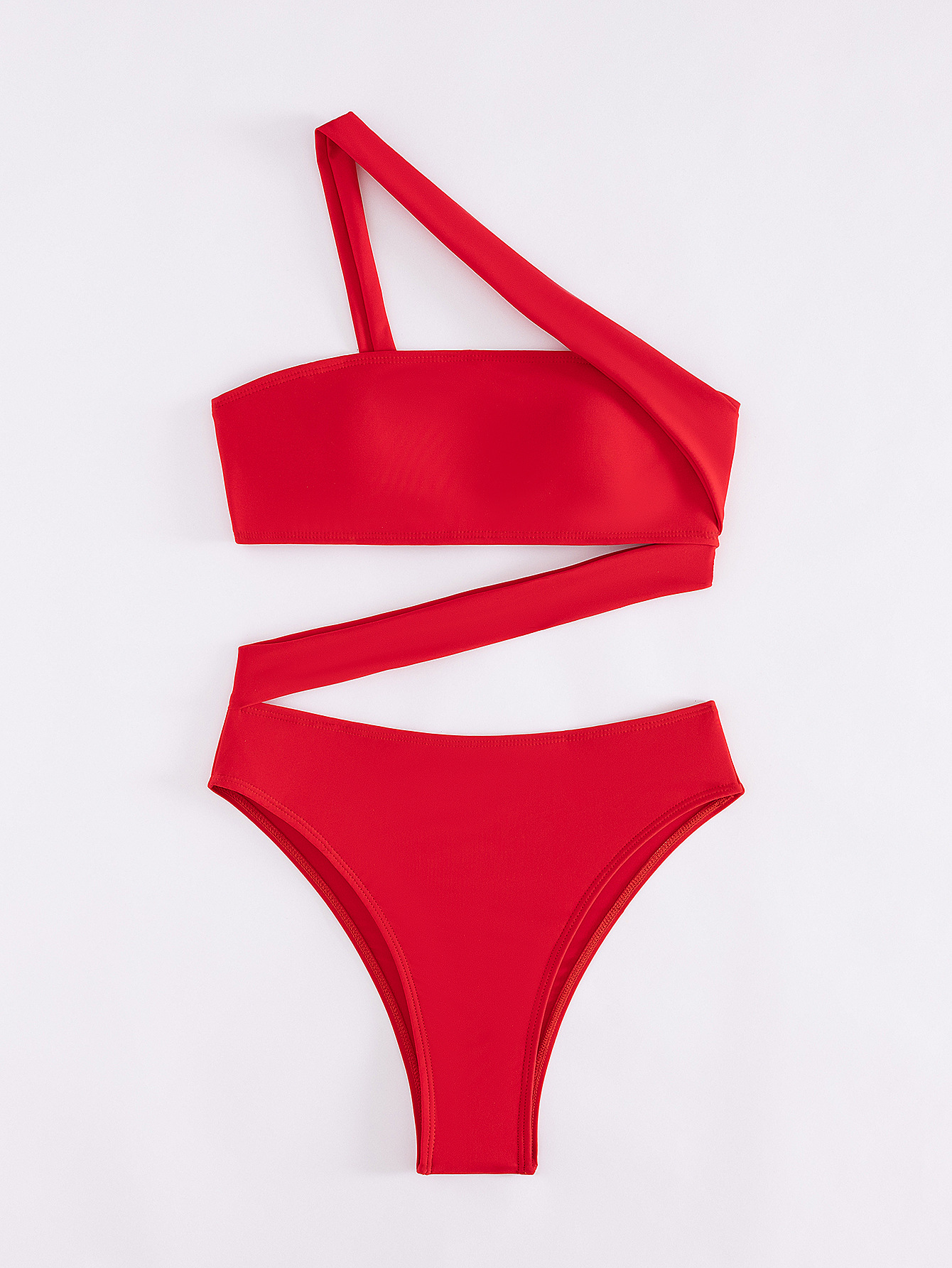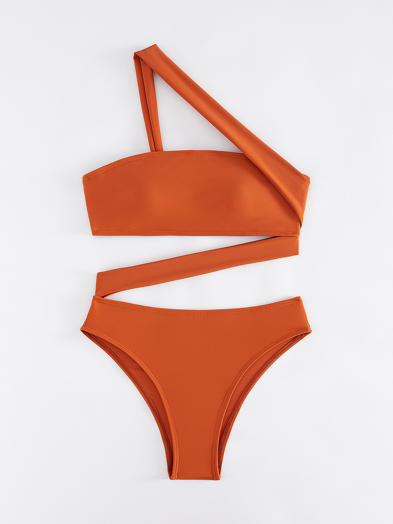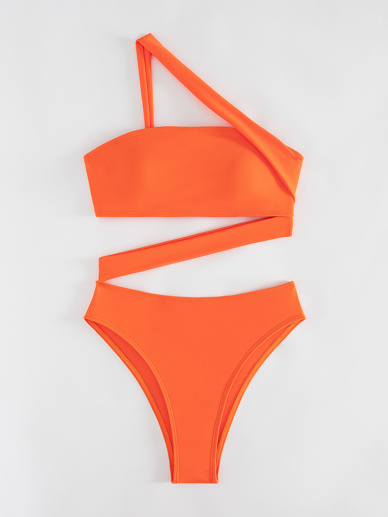 2023 새로운 솔리드 컬러 원피스 수영복 유럽과 미국 여성 수영복 단색 끈이없는 스트랩 슬랜트 숄더 원피스 비키니스토어 가기