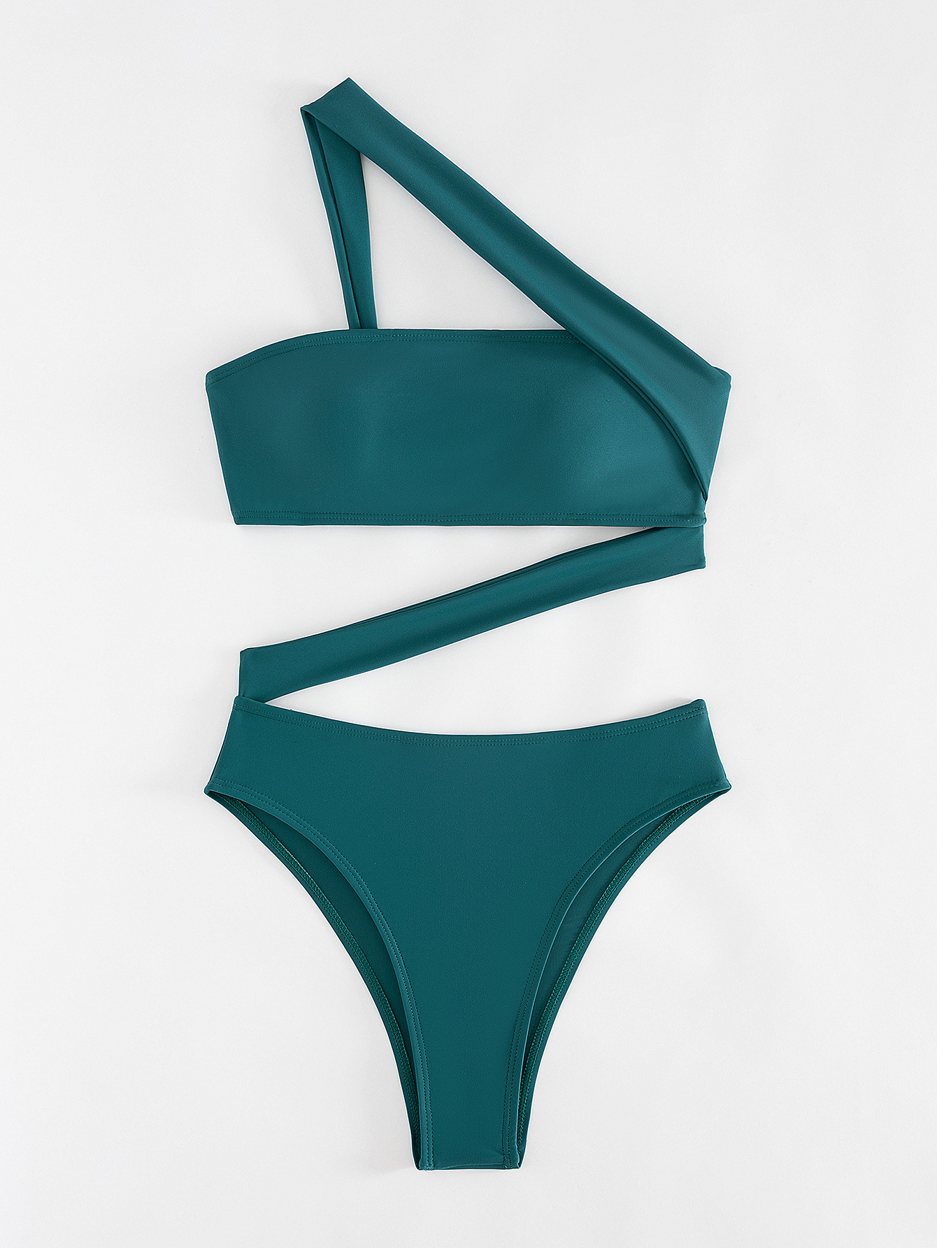 2023 새로운 솔리드 컬러 원피스 수영복 유럽과 미국 여성 수영복 단색 끈이없는 스트랩 슬랜트 숄더 원피스 비키니