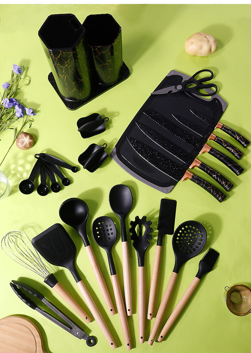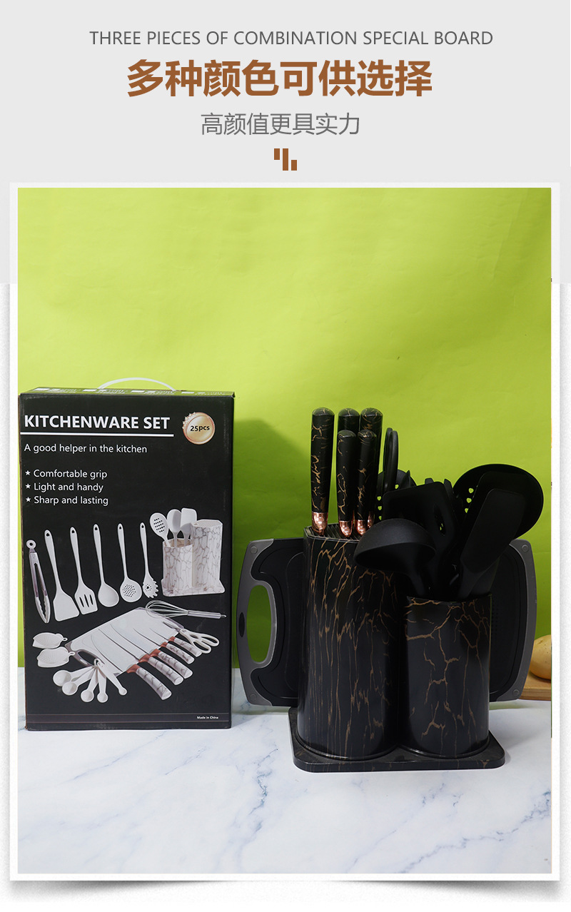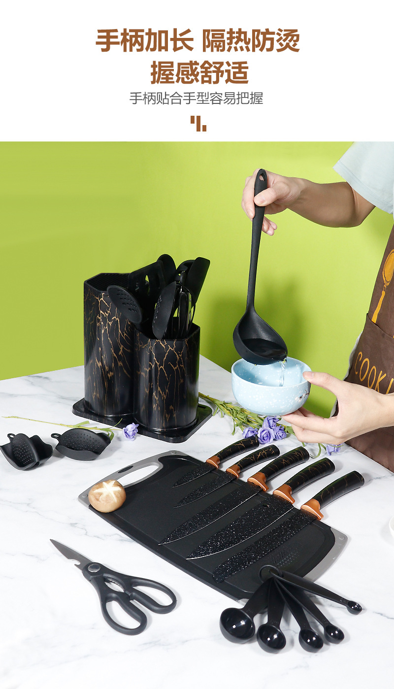 • 주방 용 나이프 25 개 세트 (하트 모양의 통합 주방 용품 대리석 보관 용 버킷)-블랙