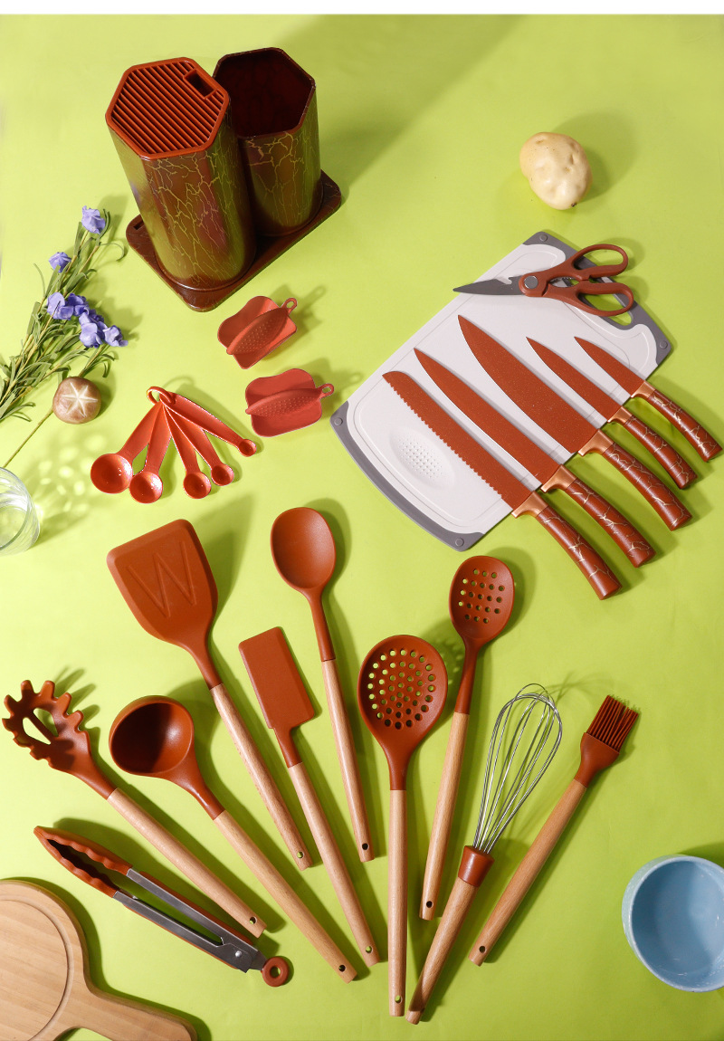 실리콘 주걱 수프 스푼 25 조각 세트 비 스틱 실리콘 주걱 식품 등급 가정용 실리콘 주방 용품 커터 세트 도매