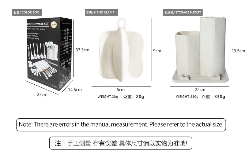• 주방 도구 세트 25 (나무 손잡이 부엌 대리석 패턴 저장 버킷)-흰색