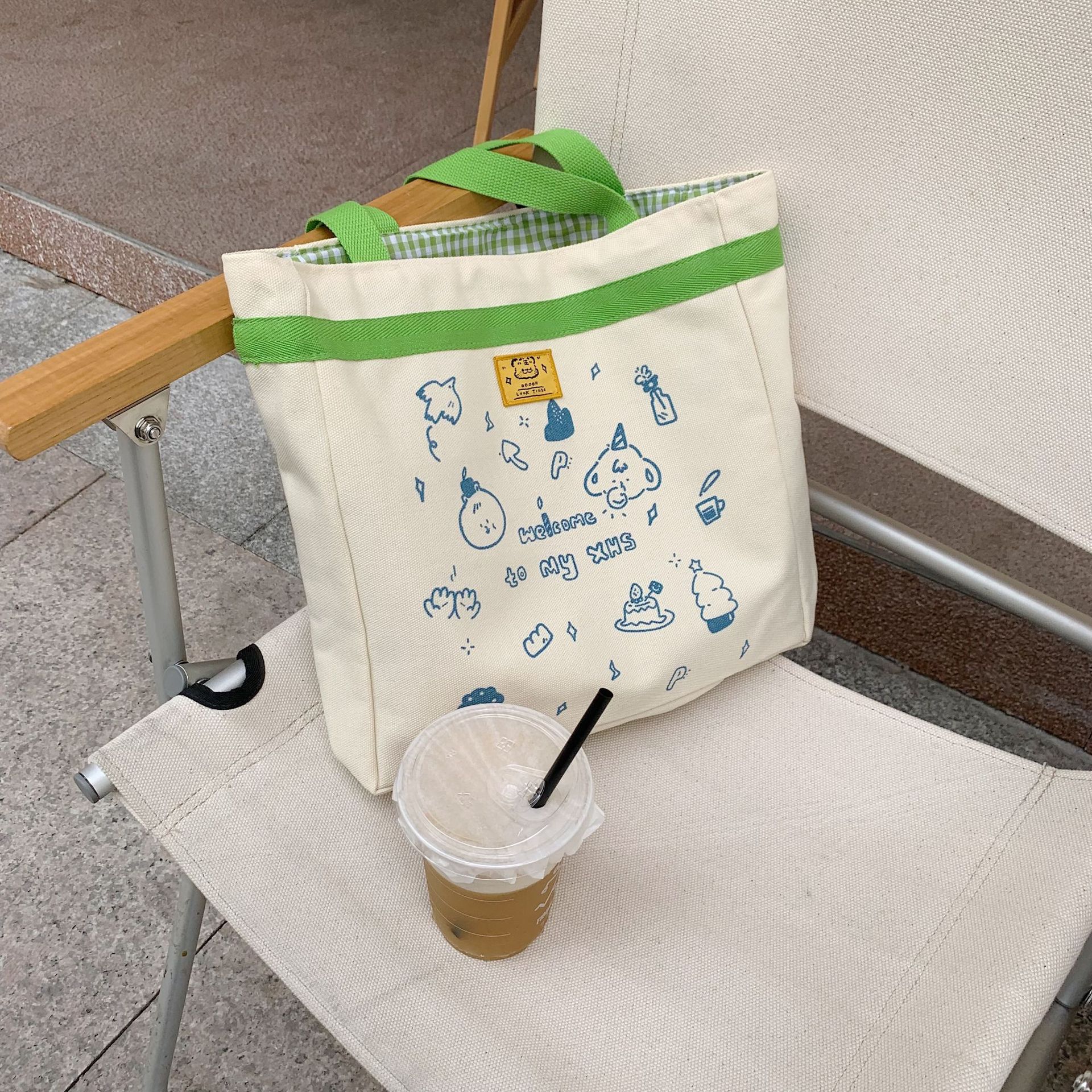 24152 한국 스타일 스타일 예술적 캔버스 가방 소녀의 귀여운 수업 신선한 스타일 숄더백 캐주얼 토트백스토어 가기
