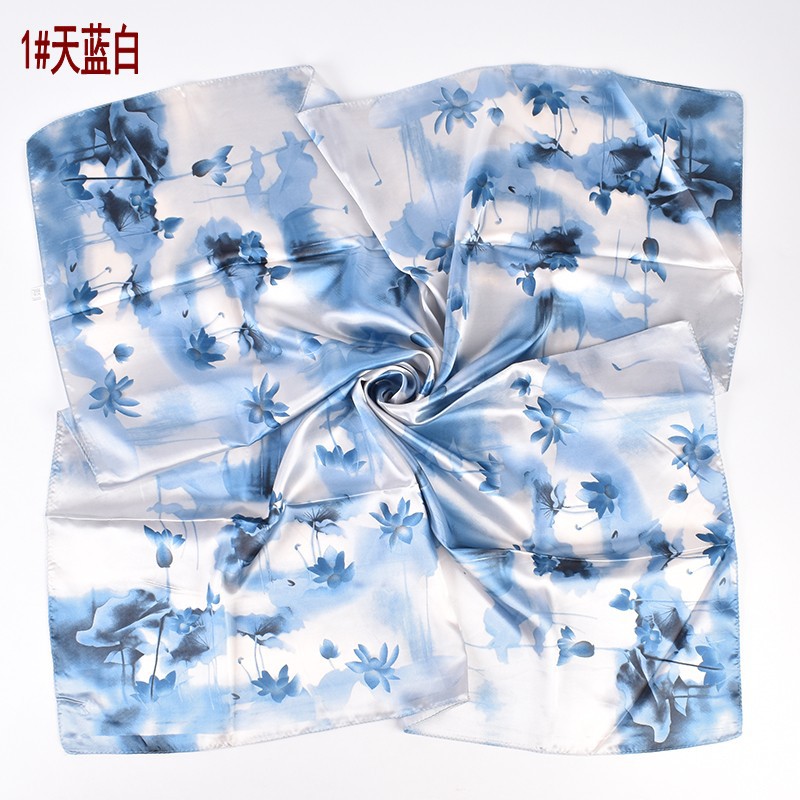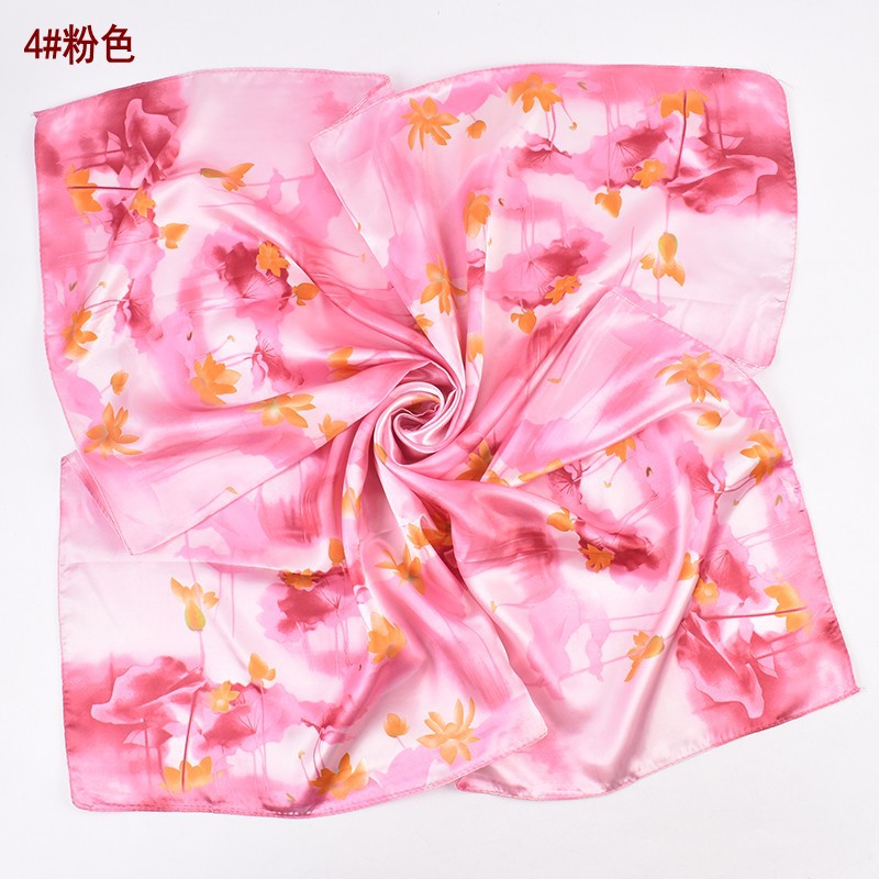 새로운 패션 레트로 연잎 무늬 90색 새틴 여성용 스카프 머리 스카프 즉시 배송 도매