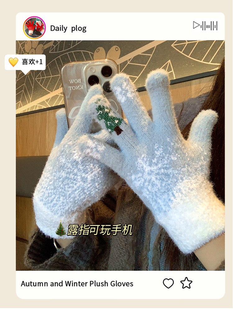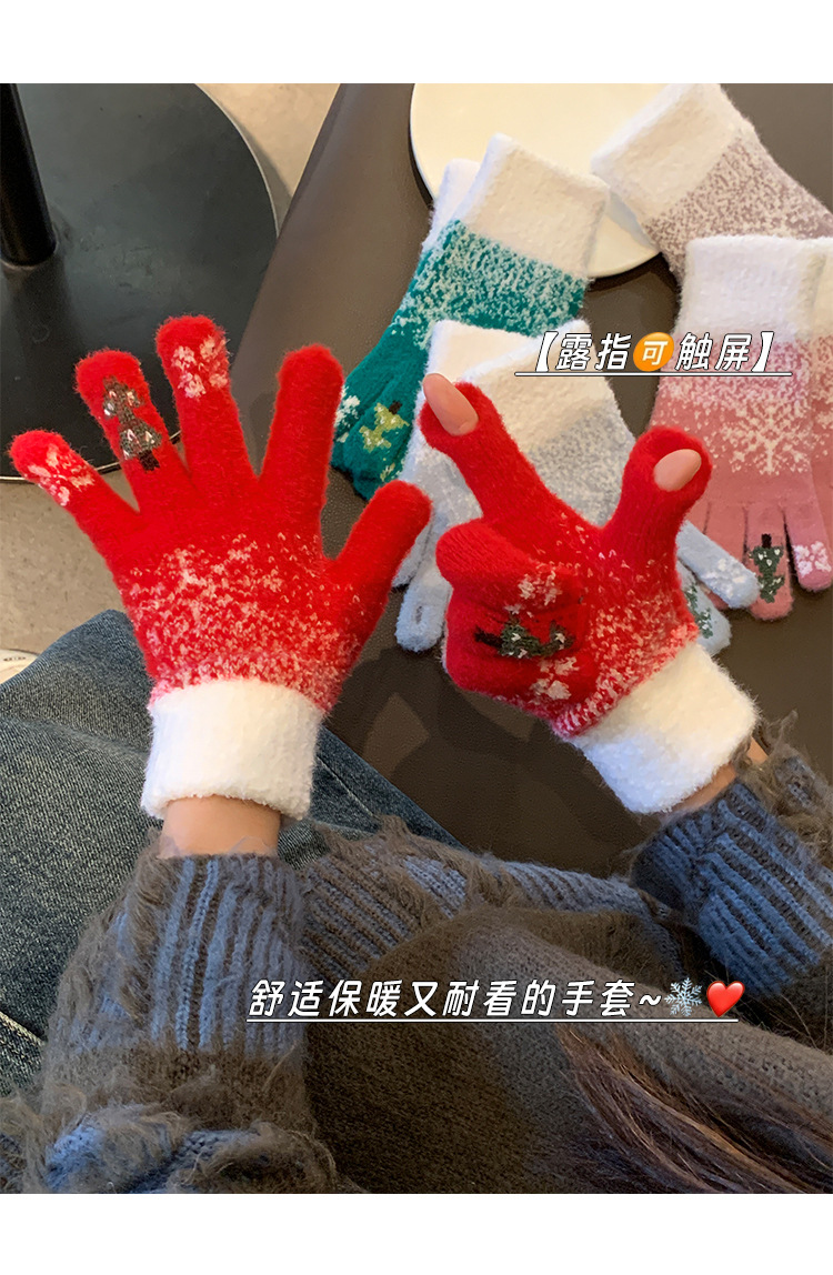 귀여운 크리스마스 레드 터치스크린 플러시 니트 손가락 장갑 여성용 겨울 보온 두꺼운 방한 자전거용스토어 가기