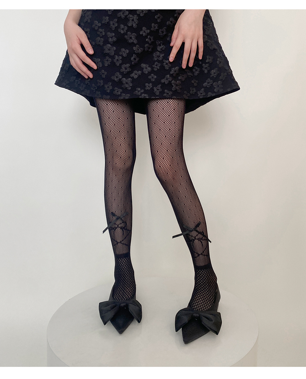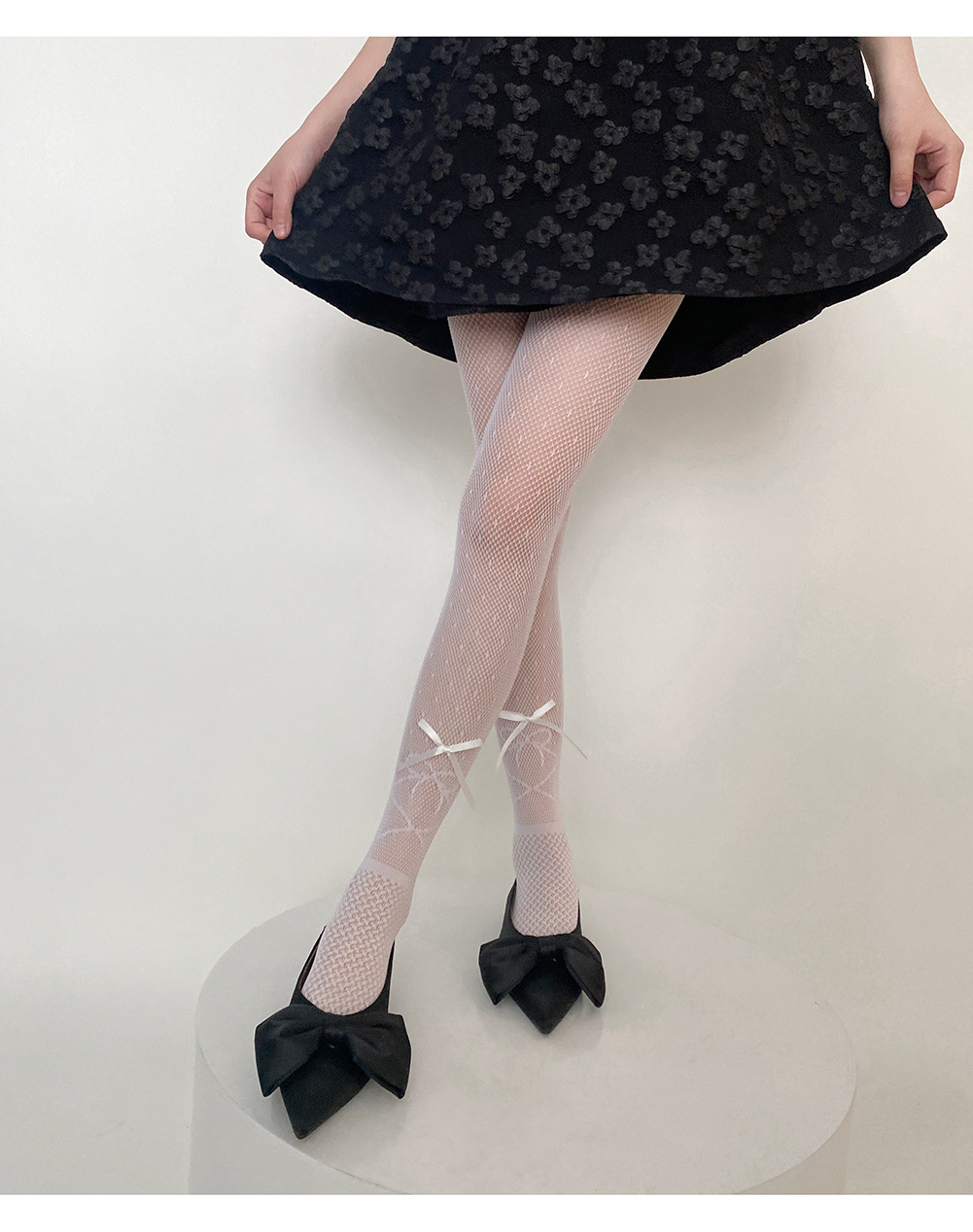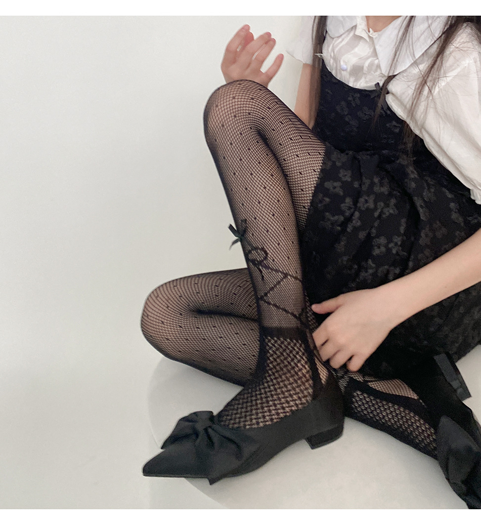 봄과 여름 새로운 Y2K 발레 스타일 리본 활 레이스 그물 스타킹 바닥 바지 일본 소녀 얇은 스타킹