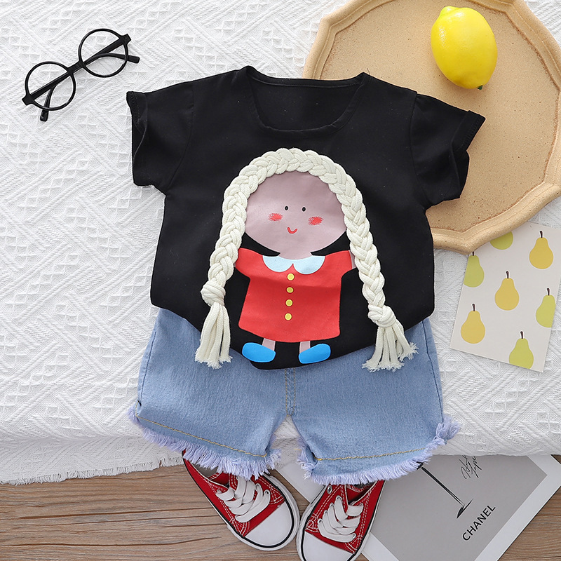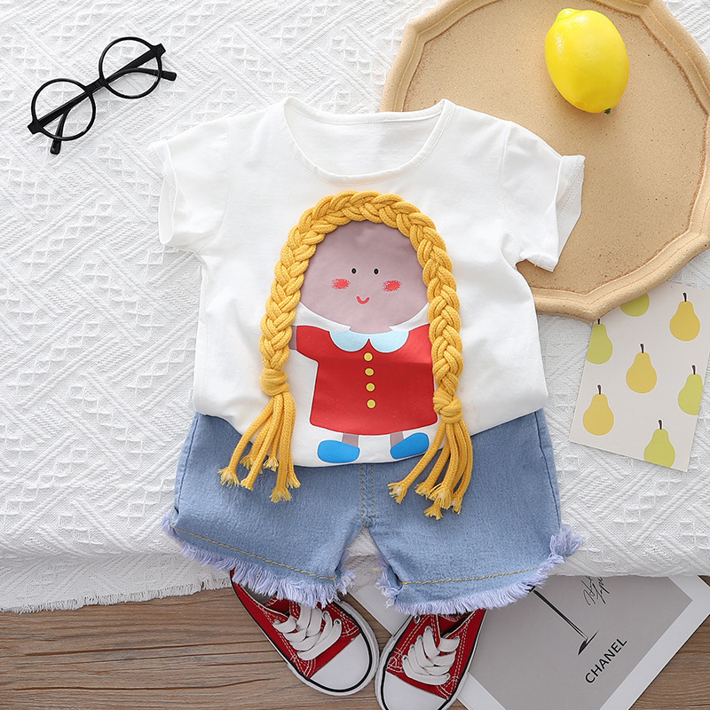 대외 무역 여아 반팔 세트 여름 어린이 유행 서양 스타일 스포츠 캐주얼 투피스 아기 여아 얇은 옷