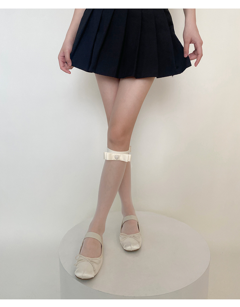 밀크 화이트 프리 컷 jk 중간 길이 양말 일본 발레 리본 사랑 활 무릎 양말 로리타 커프 양말 여름스토어 가기