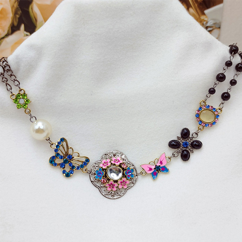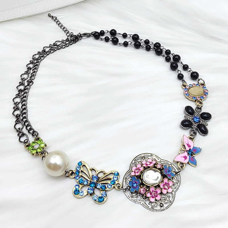 2023 폭발적인 목걸이 유럽과 미국 빈티지 컬러 라인 석 나비 중공 꽃 진주 짧은 민족 스타일 목걸이 보석스토어 가기